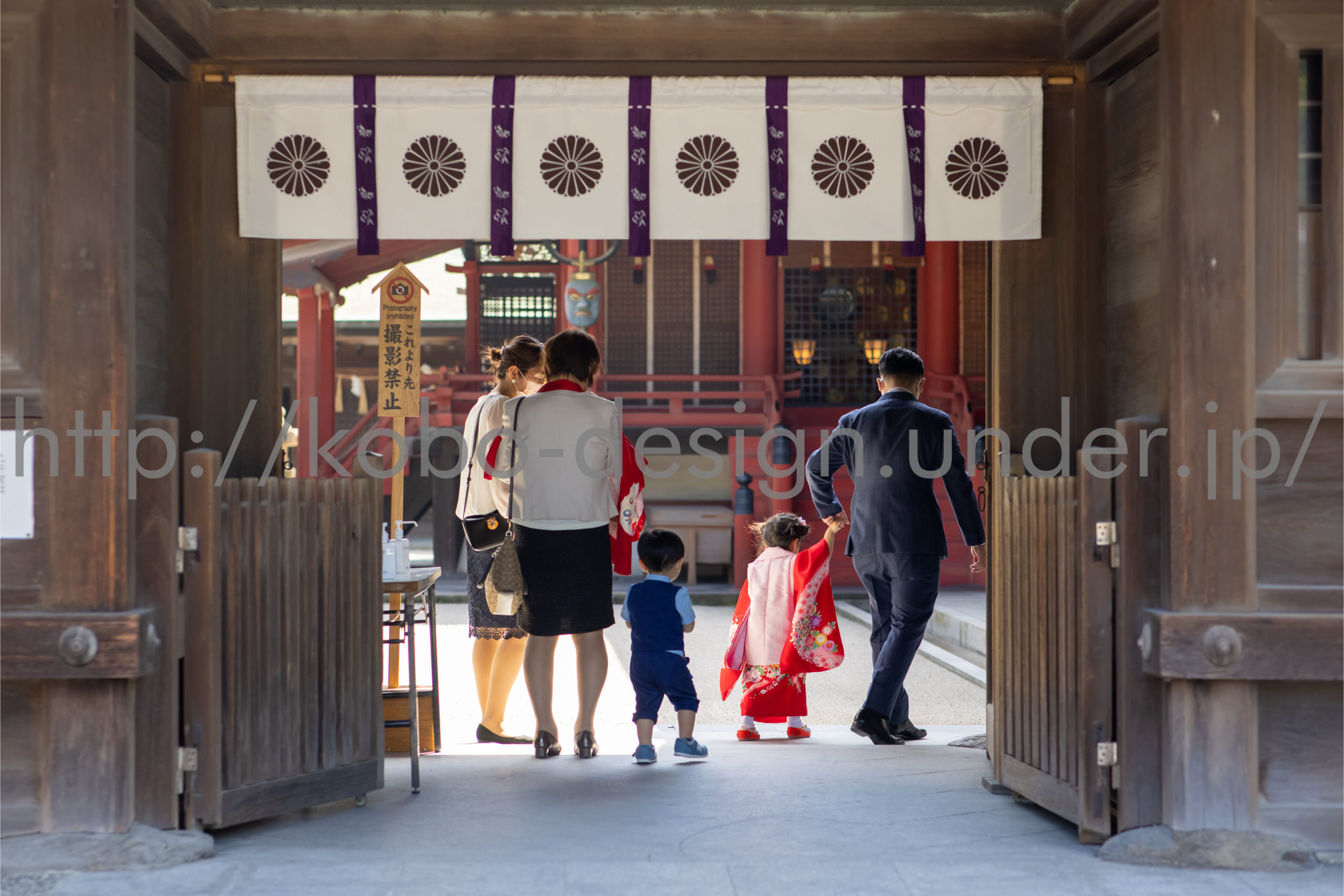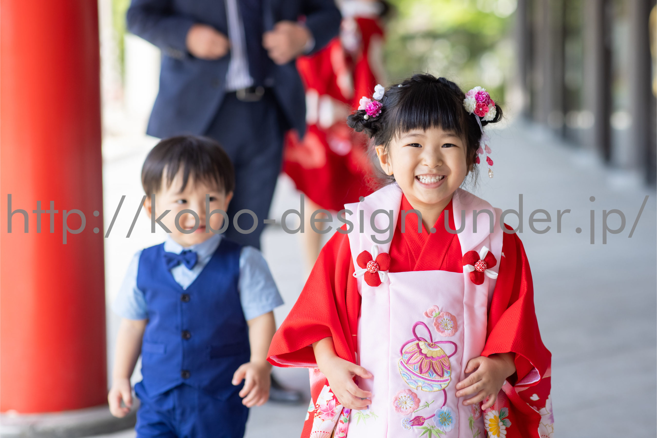 kobo-Design ではご希望の場所で御希望の撮影を承る出張カメラマンサービスになります。 七五三、お宮参り、餅踏み、など御子様の行事に同行し御依頼時間内の撮影を致します。集合写真、お爺さんお婆さんとお孫さんでのカット、御夫妻とお子さんでのカット、祈願中の撮影が可能な場合は祈願中のカット、あとは御子様の自然な表情など時間内枚数制限なしで撮影致します。 まずはお気軽に問い合わせ下さい。