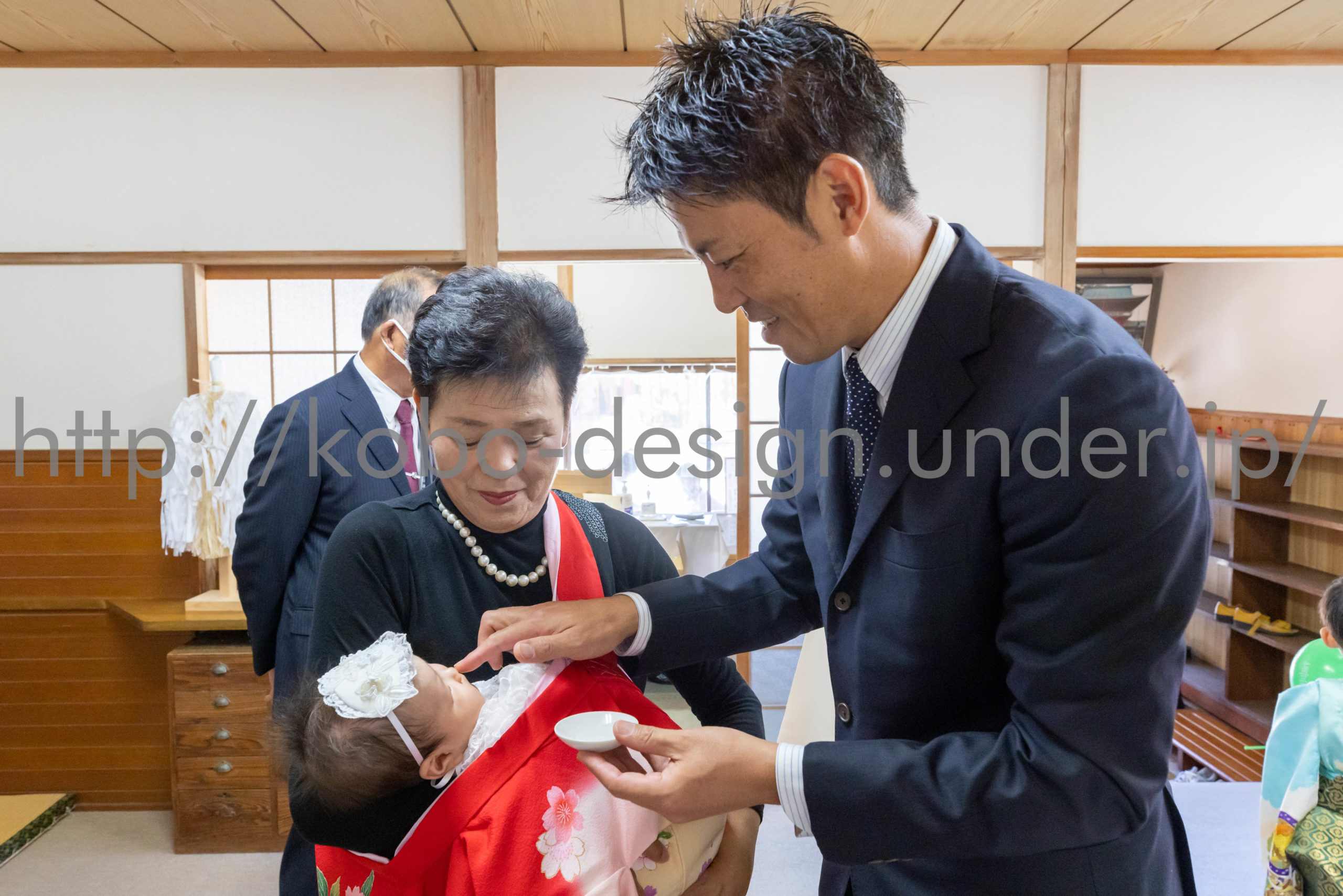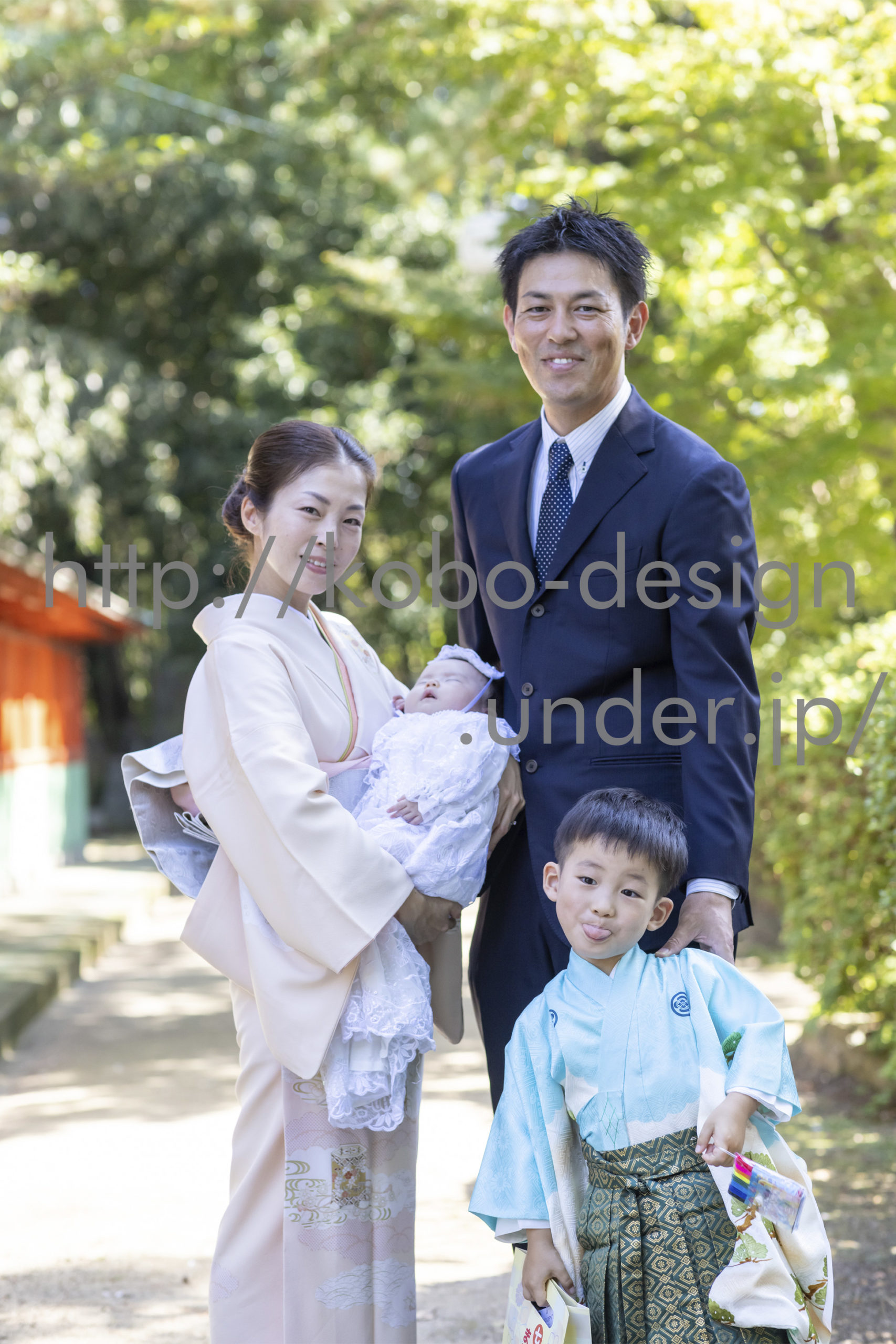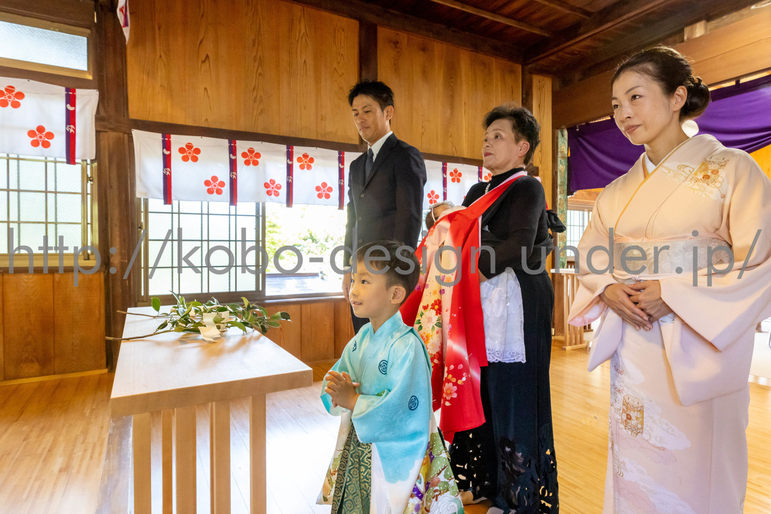 kobo-Design ではご希望の場所で御希望の撮影を承る出張カメラマンサービスになります。 七五三、お宮参り、餅踏み、など御子様の行事に同行し御依頼時間内の撮影を致します。集合写真、お爺さんお婆さんとお孫さんでのカット、御夫妻とお子さんでのカット、祈願中の撮影が可能な場合は祈願中のカット、あとは御子様の自然な表情など時間内枚数制限なしで撮影致します。 まずはお気軽に問い合わせ下さい。