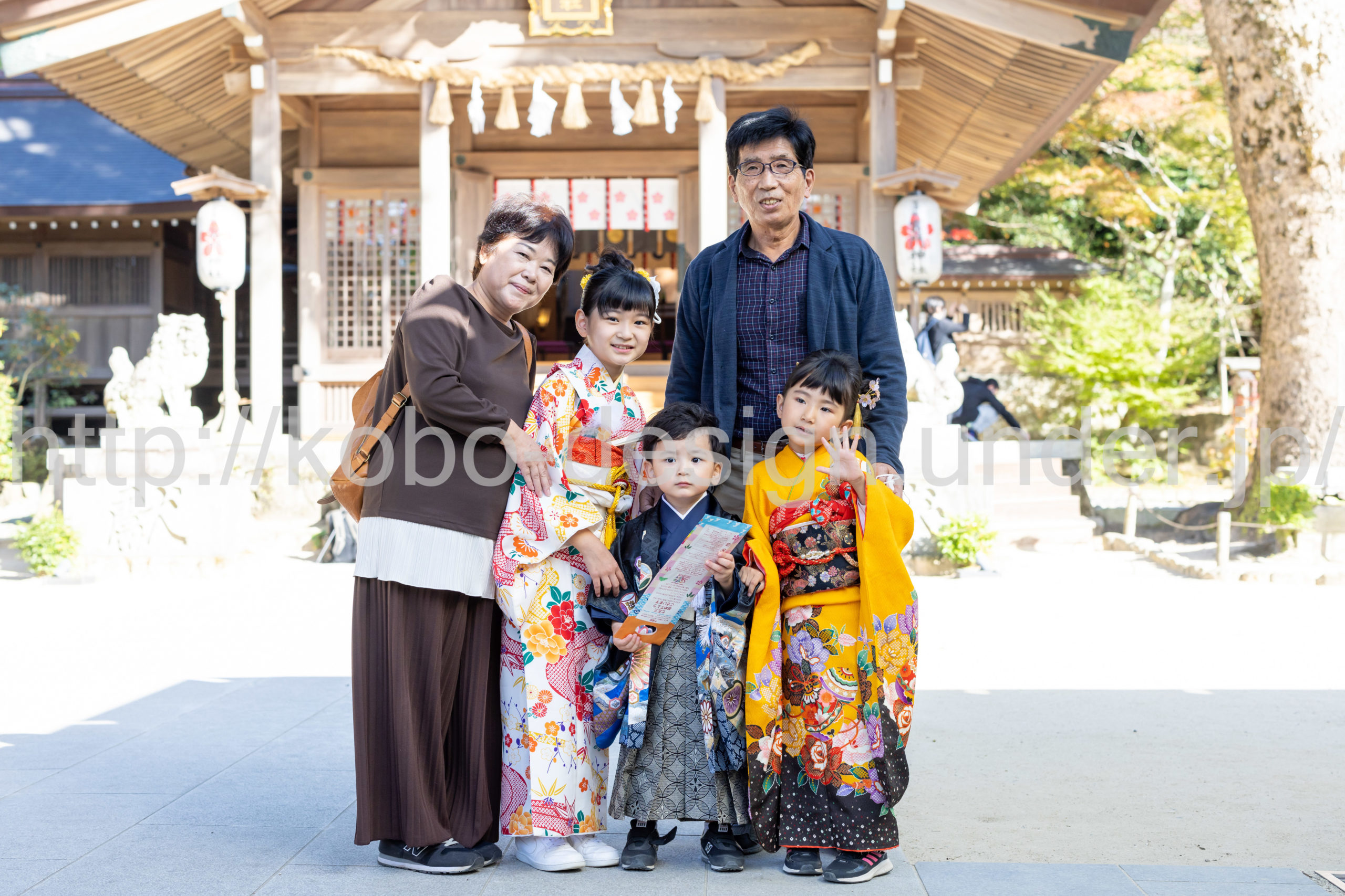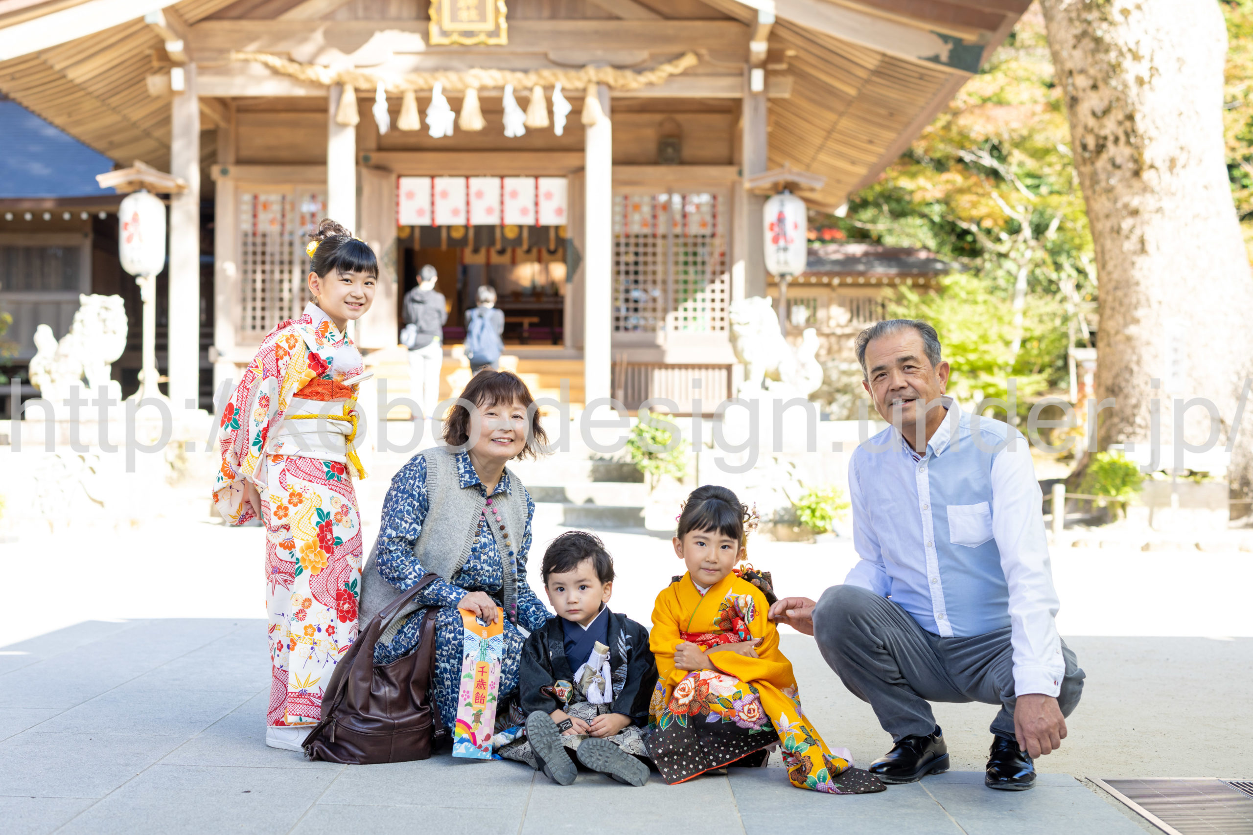 kobo-Design ではご希望の場所で御希望の撮影を承る出張カメラマンサービスになります。 七五三、お宮参り、餅踏み、など御子様の行事に同行し御依頼時間内の撮影を致します。集合写真、お爺さんお婆さんとお孫さんでのカット、御夫妻とお子さんでのカット、祈願中の撮影が可能な場合は祈願中のカット、あとは御子様の自然な表情など時間内枚数制限なしで撮影致します。 まずはお気軽に問い合わせ下さい。