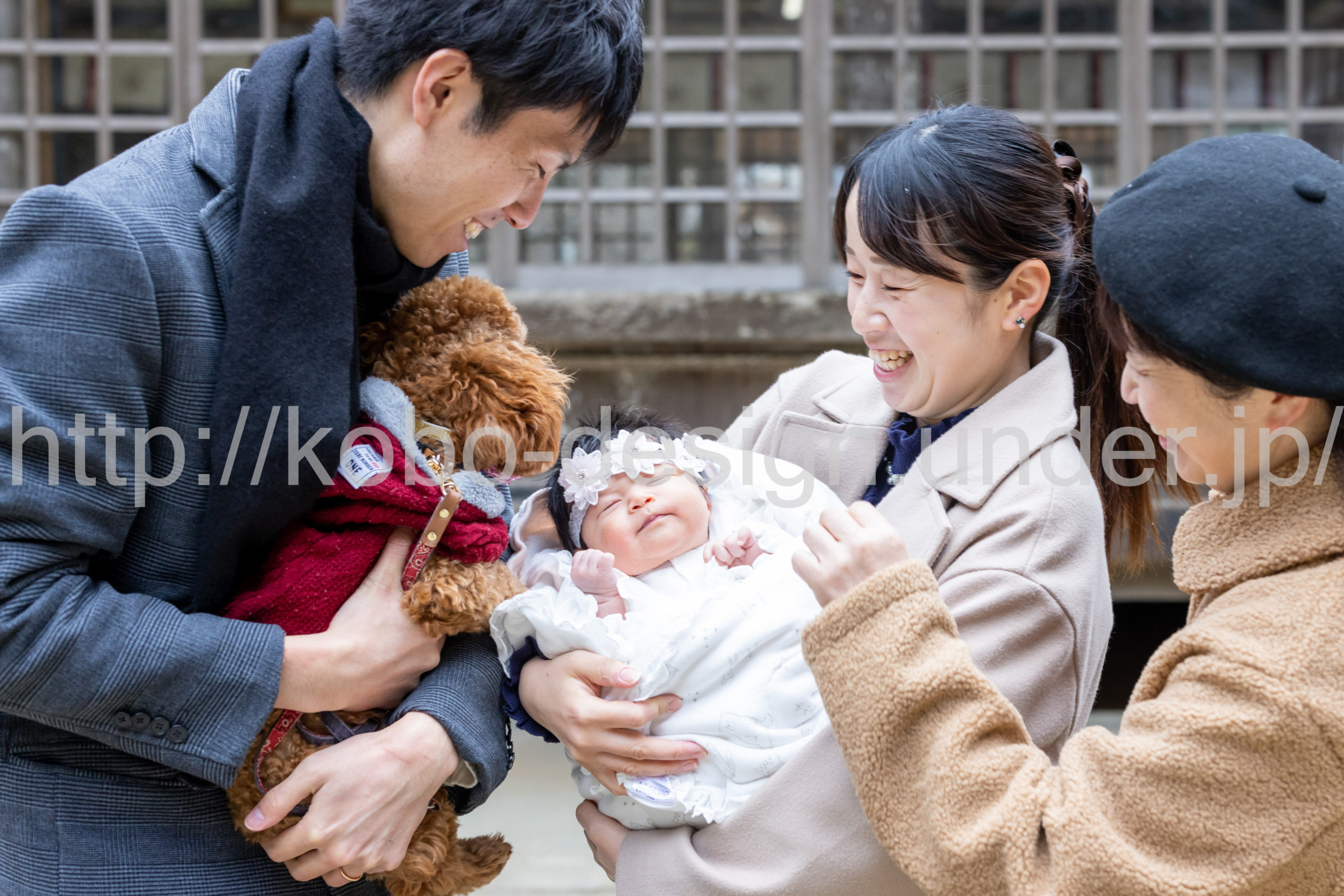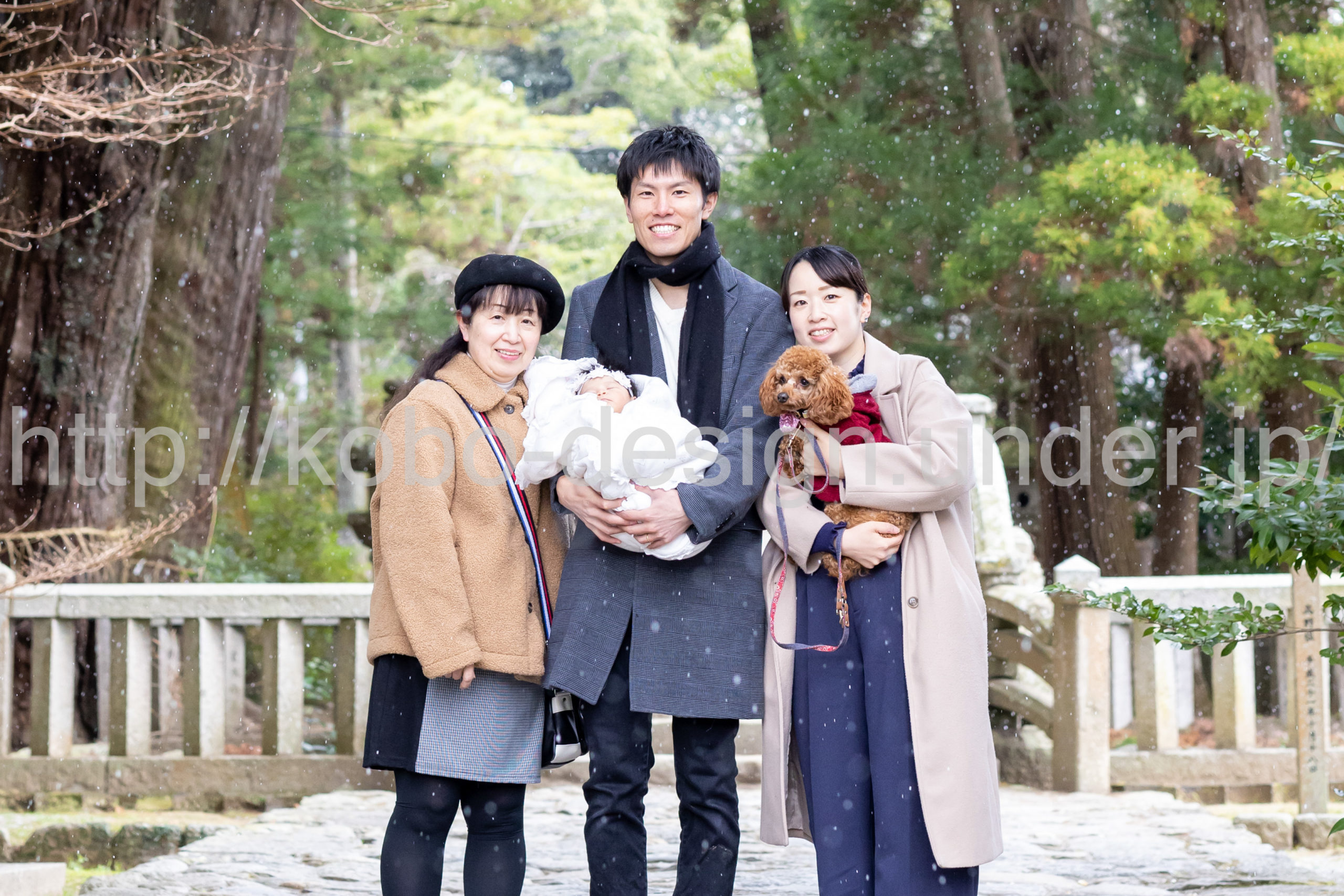 kobo-Design ではご希望の場所で御希望の撮影を承る出張カメラマンサービスになります。 七五三、お宮参り、餅踏み、など御子様の行事に同行し御依頼時間内の撮影を致します。集合写真、お爺さんお婆さんとお孫さんでのカット、御夫妻とお子さんでのカット、祈願中の撮影が可能な場合は祈願中のカット、あとは御子様の自然な表情など時間内枚数制限なしで撮影致します。 まずはお気軽に問い合わせ下さい。