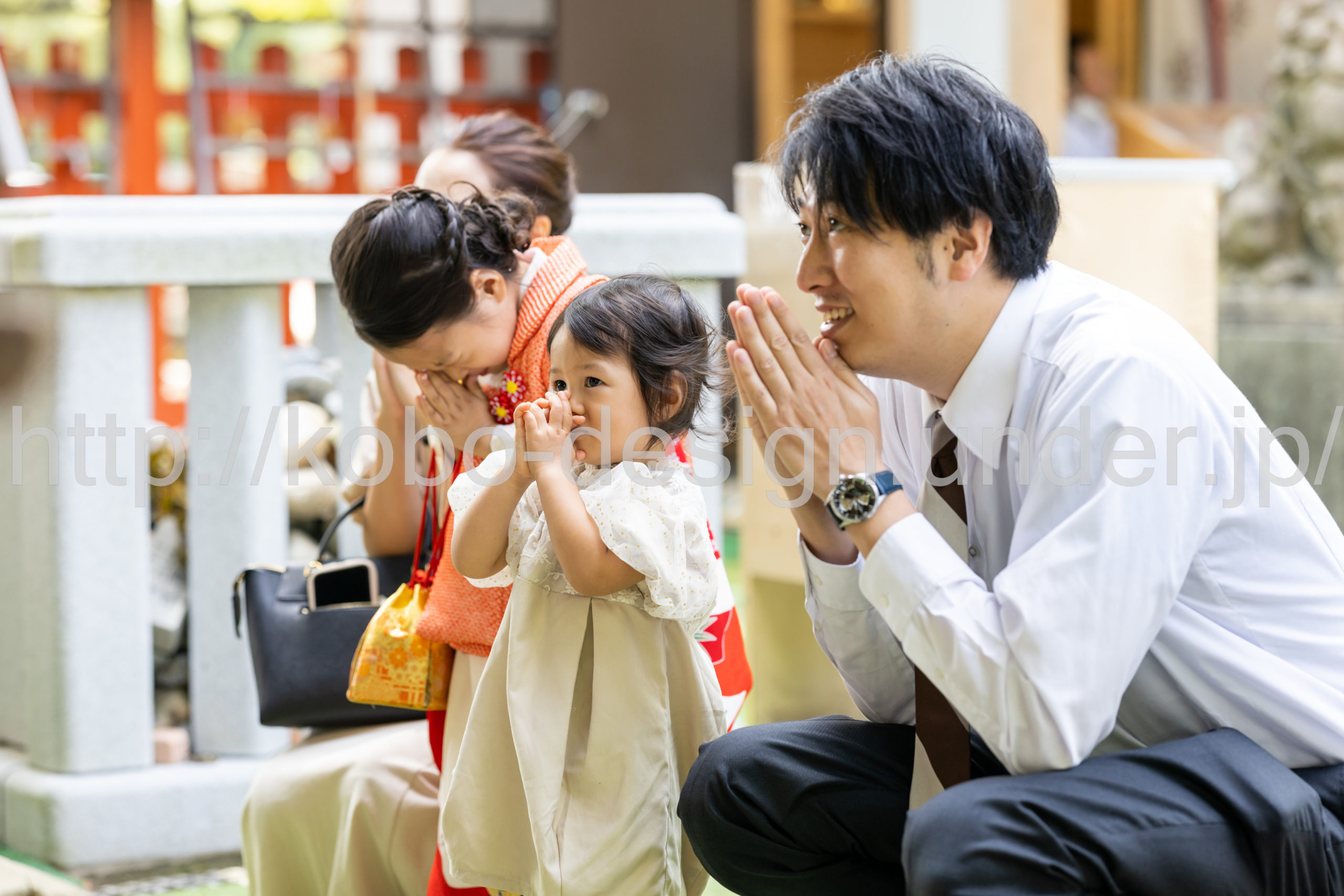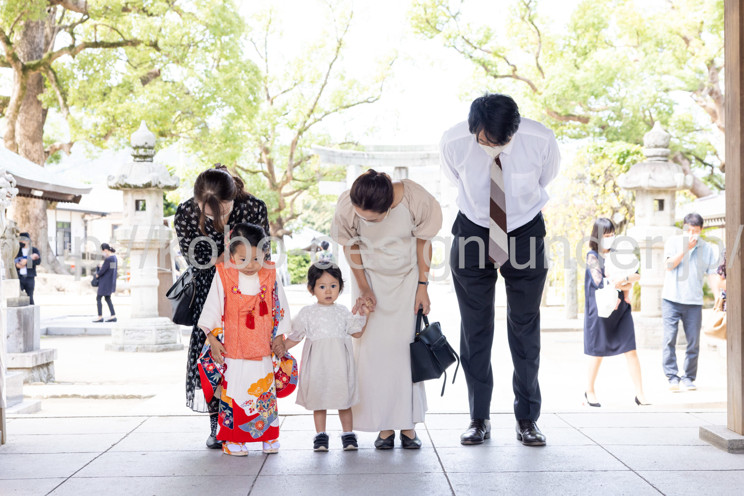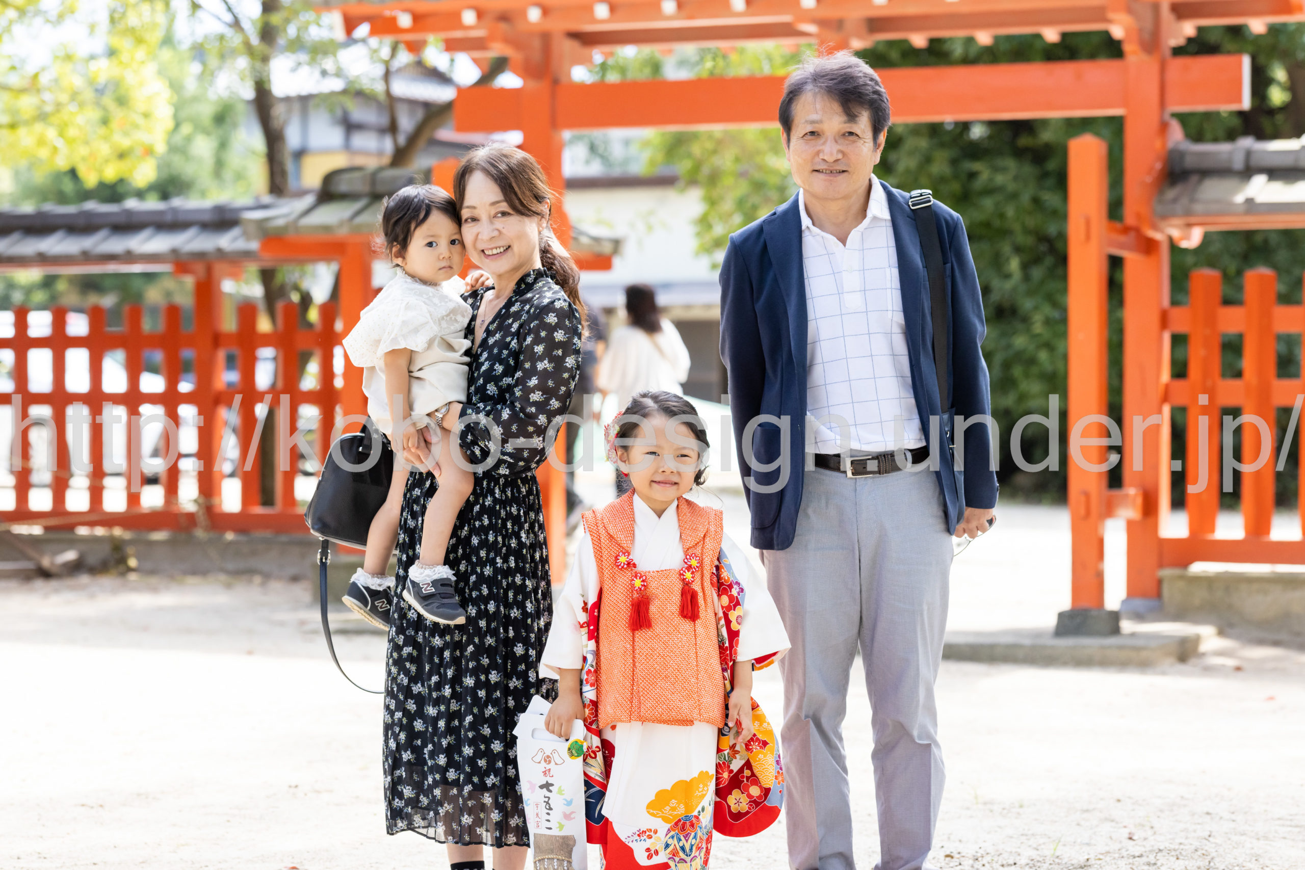 kobo-Design ではご希望の場所で御希望の撮影を承る出張カメラマンサービスになります。 七五三、お宮参り、餅踏み、など御子様の行事に同行し御依頼時間内の撮影を致します。集合写真、お爺さんお婆さんとお孫さんでのカット、御夫妻とお子さんでのカット、祈願中の撮影が可能な場合は祈願中のカット、あとは御子様の自然な表情など時間内枚数制限なしで撮影致します。 まずはお気軽に問い合わせ下さい。