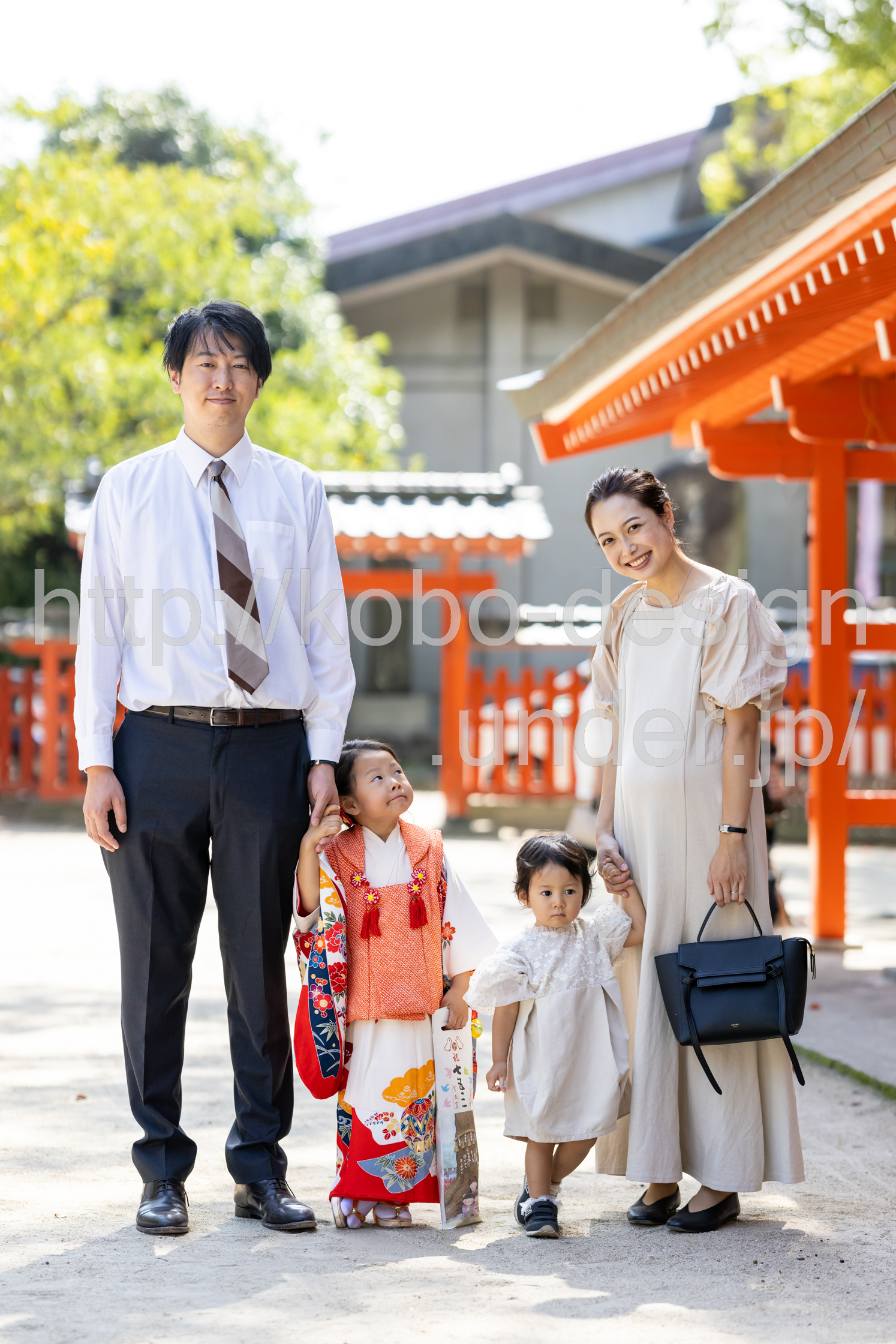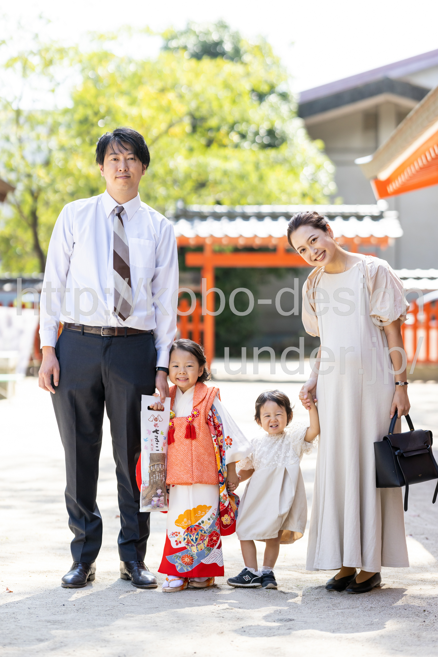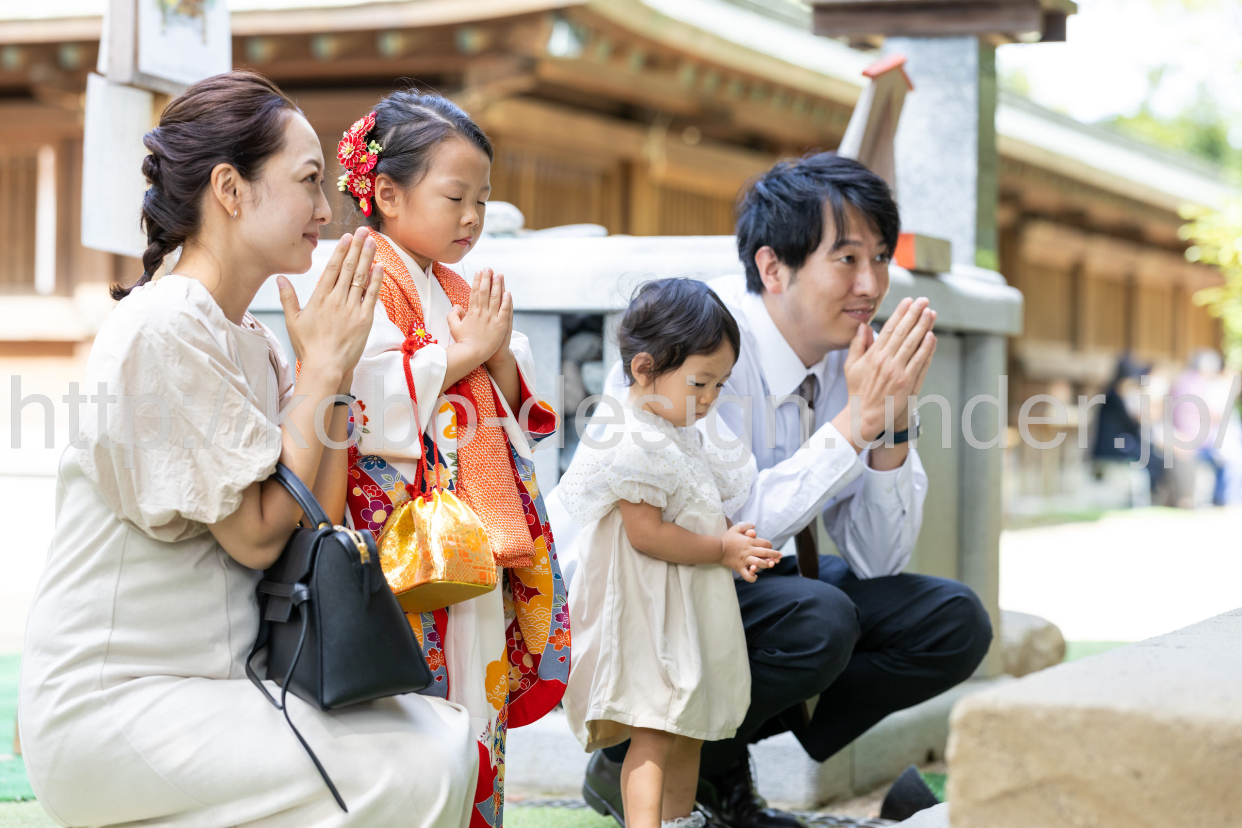 kobo-Design ではご希望の場所で御希望の撮影を承る出張カメラマンサービスになります。 七五三、お宮参り、餅踏み、など御子様の行事に同行し御依頼時間内の撮影を致します。集合写真、お爺さんお婆さんとお孫さんでのカット、御夫妻とお子さんでのカット、祈願中の撮影が可能な場合は祈願中のカット、あとは御子様の自然な表情など時間内枚数制限なしで撮影致します。 まずはお気軽に問い合わせ下さい。