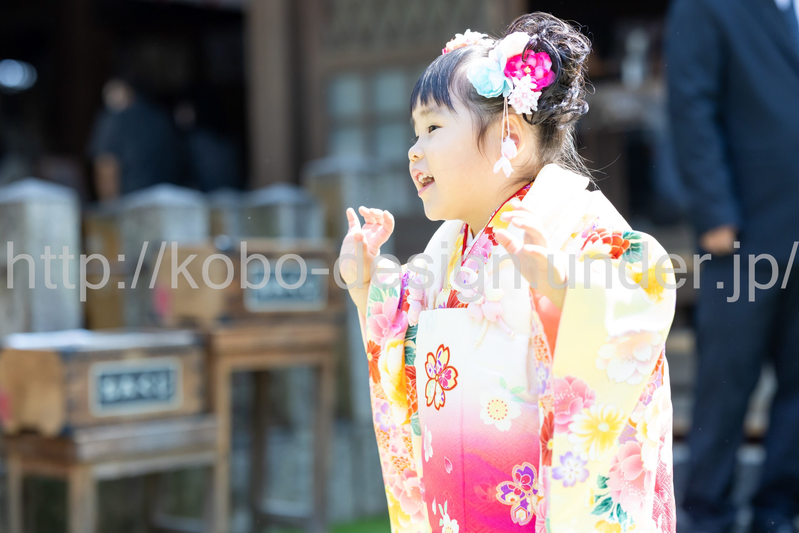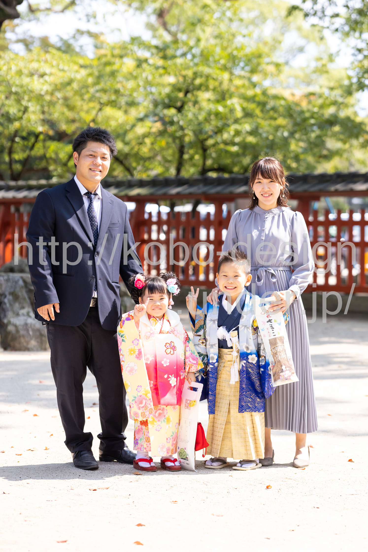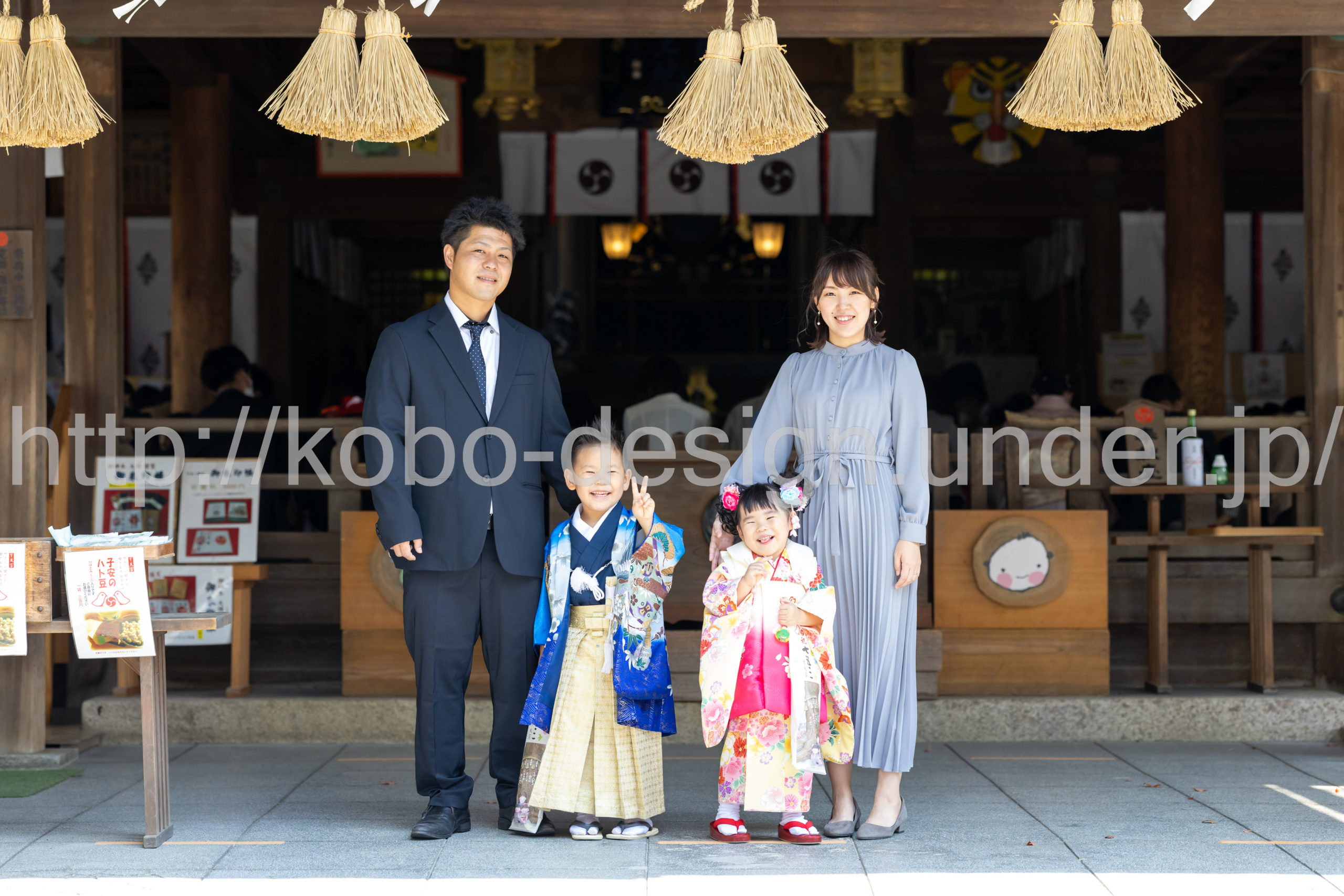 kobo-Design ではご希望の場所で御希望の撮影を承る出張カメラマンサービスになります。 七五三、お宮参り、餅踏み、など御子様の行事に同行し御依頼時間内の撮影を致します。集合写真、お爺さんお婆さんとお孫さんでのカット、御夫妻とお子さんでのカット、祈願中の撮影が可能な場合は祈願中のカット、あとは御子様の自然な表情など時間内枚数制限なしで撮影致します。 まずはお気軽に問い合わせ下さい。