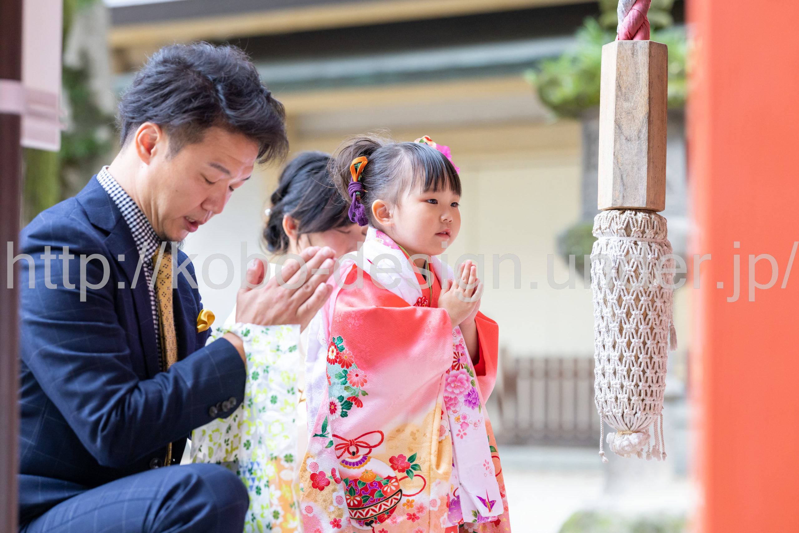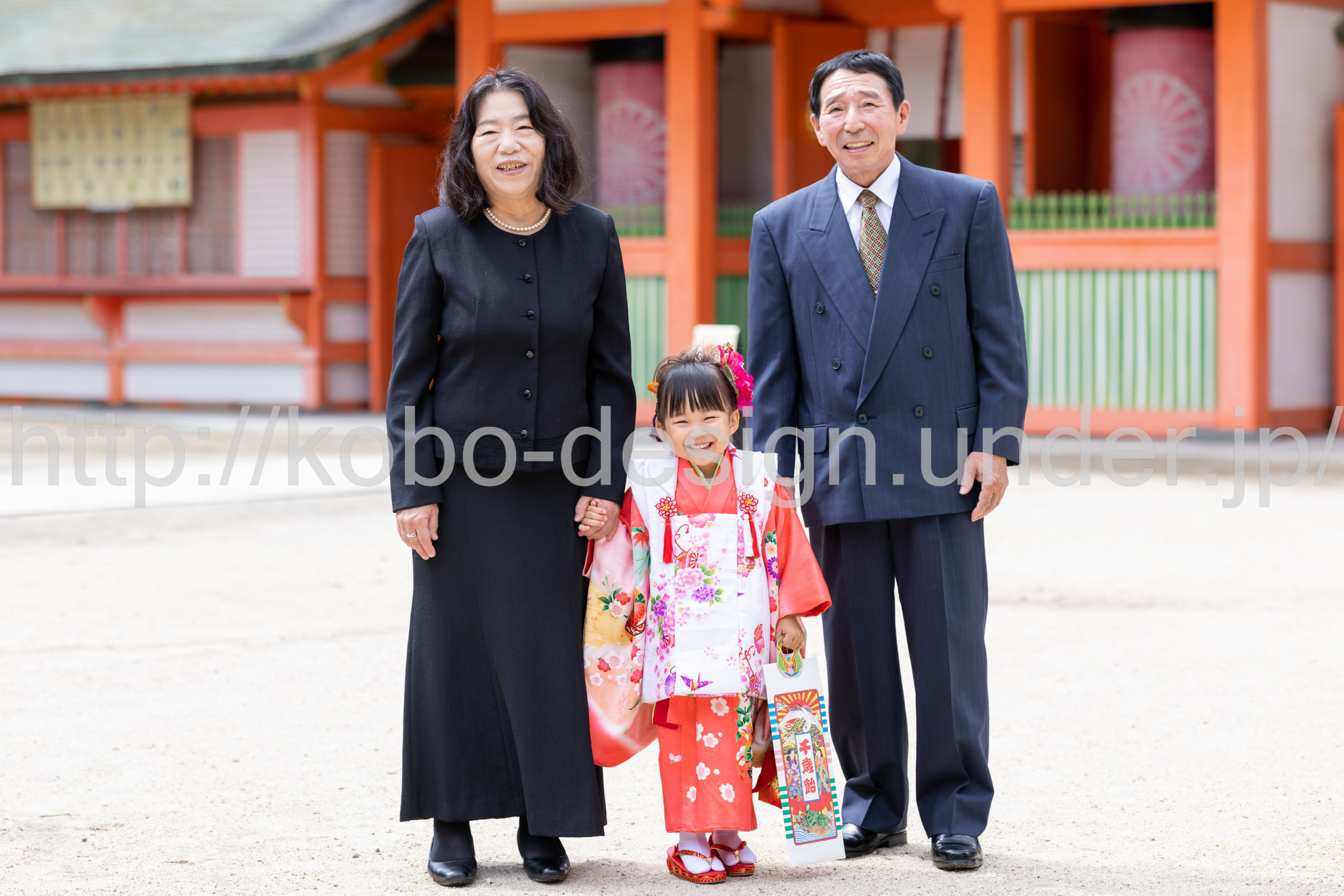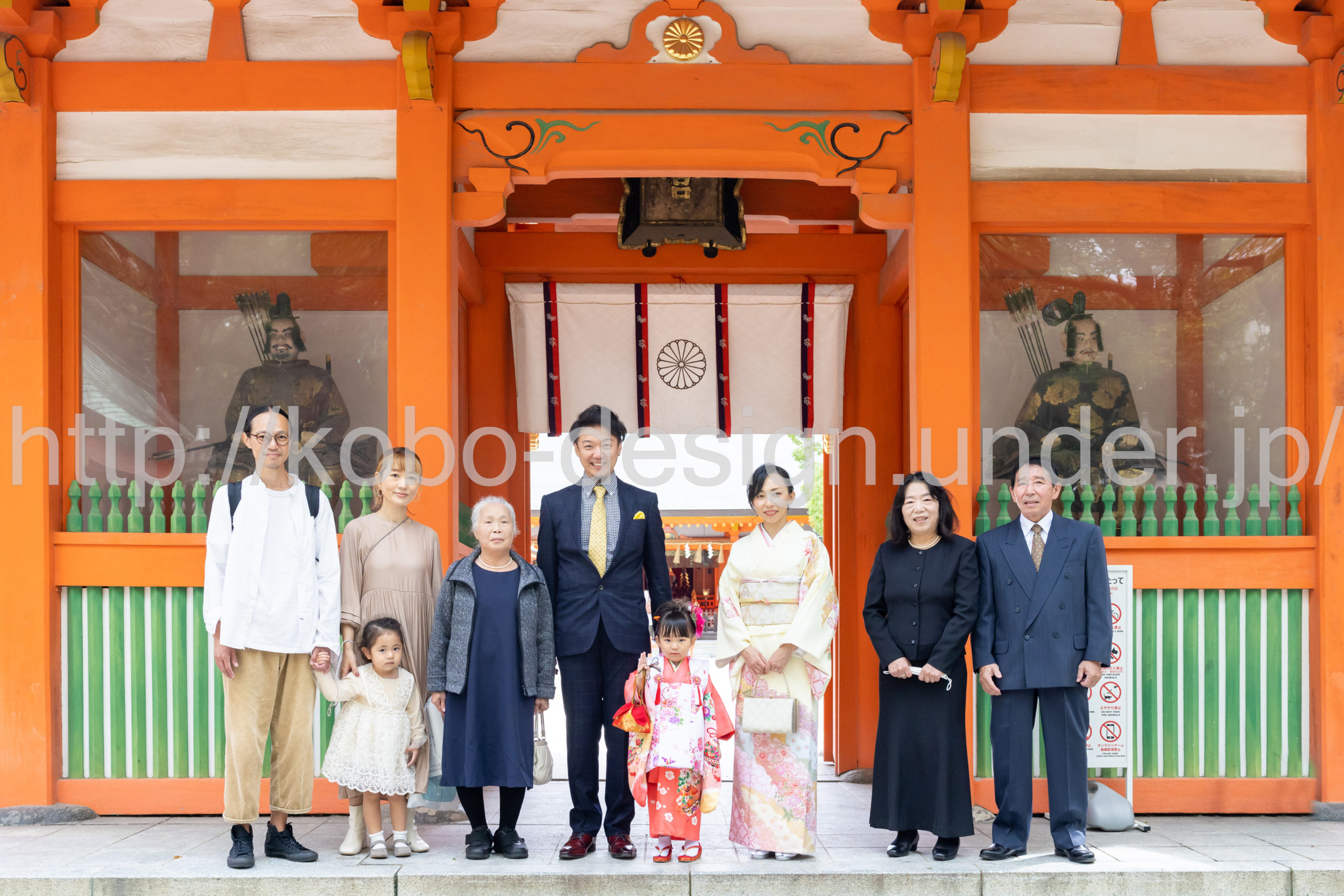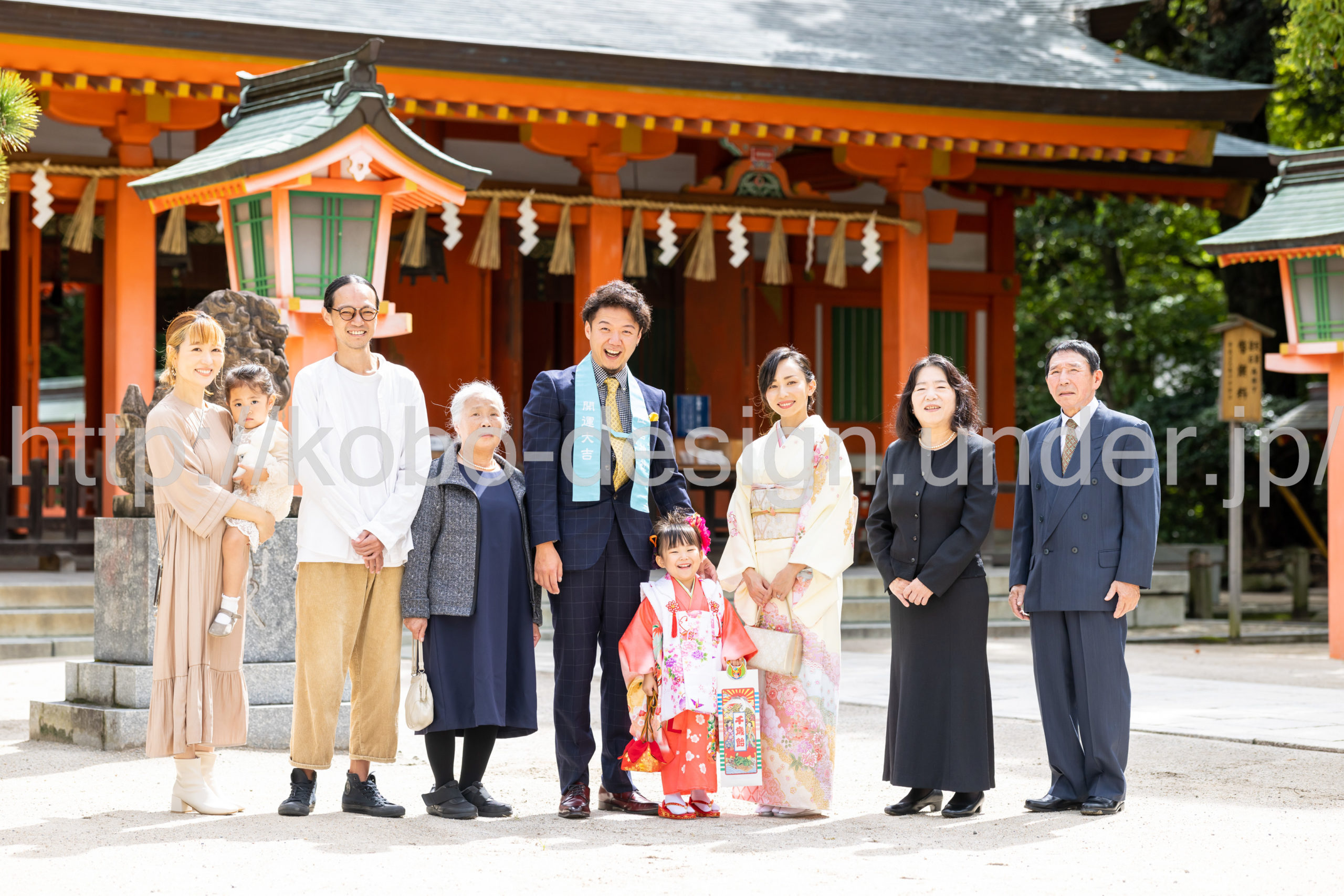 kobo-Design ではご希望の場所で御希望の撮影を承る出張カメラマンサービスになります。 七五三、お宮参り、餅踏み、など御子様の行事に同行し御依頼時間内の撮影を致します。集合写真、お爺さんお婆さんとお孫さんでのカット、御夫妻とお子さんでのカット、祈願中の撮影が可能な場合は祈願中のカット、あとは御子様の自然な表情など時間内枚数制限なしで撮影致します。 まずはお気軽に問い合わせ下さい。
