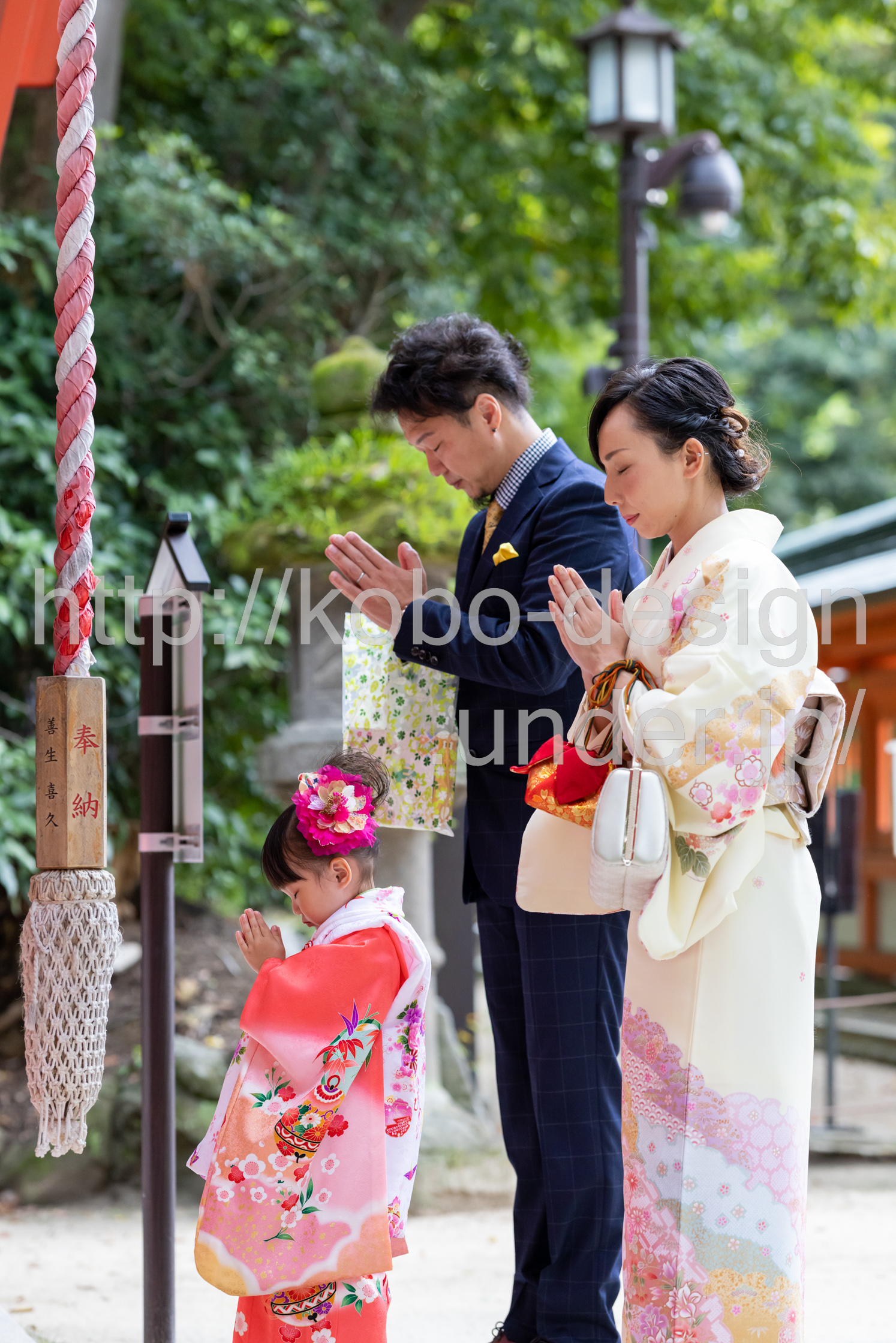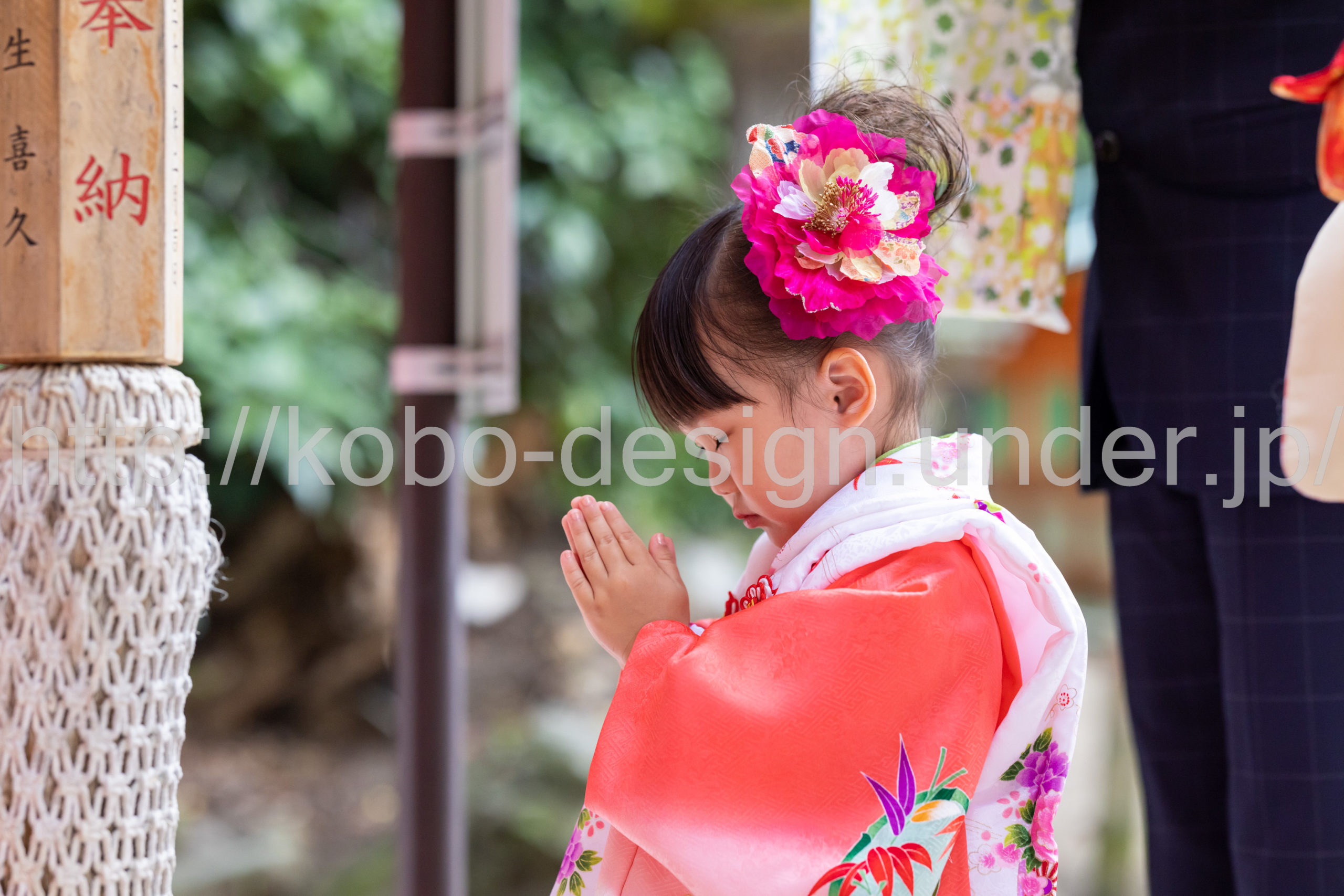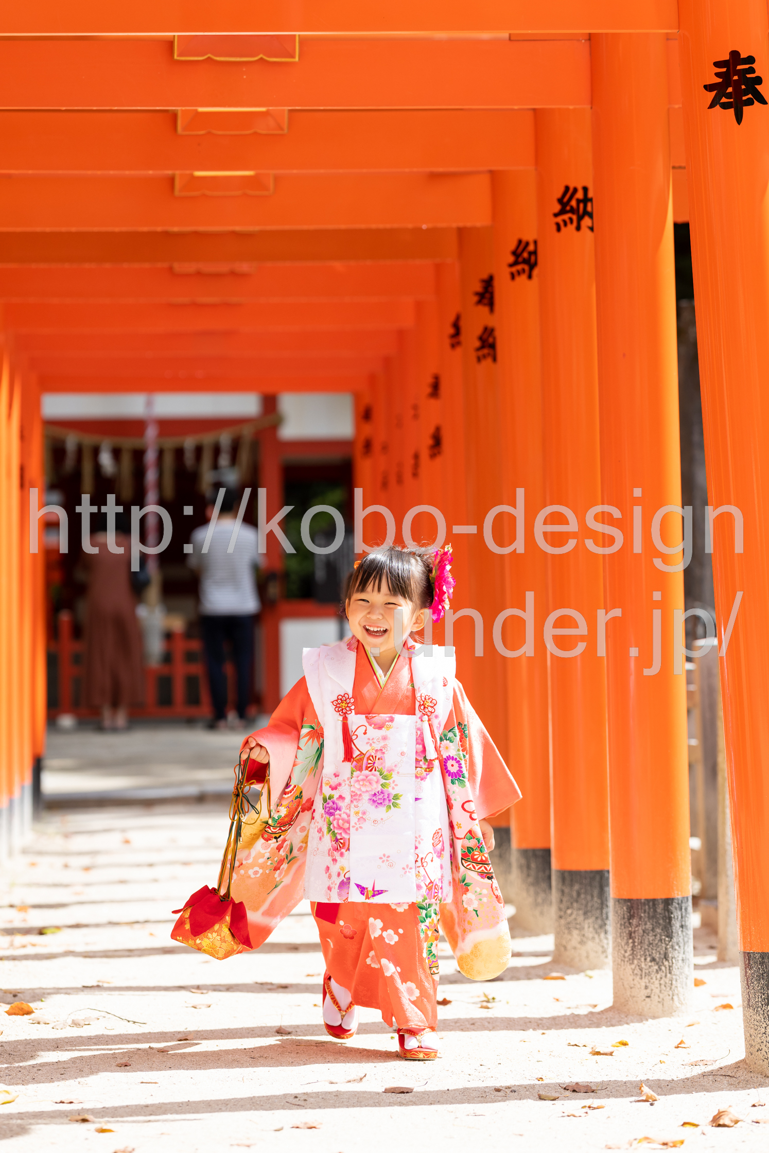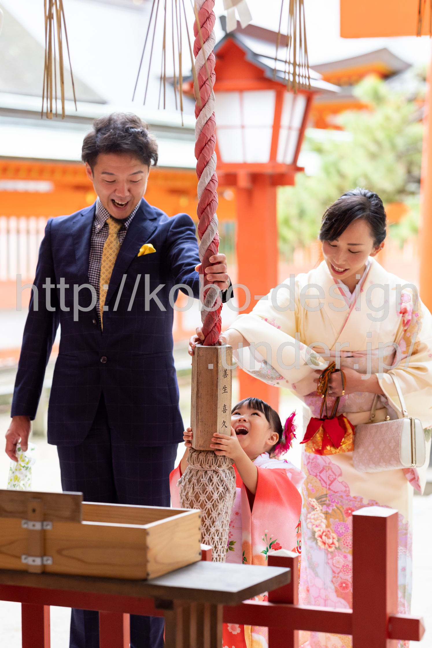 kobo-Design ではご希望の場所で御希望の撮影を承る出張カメラマンサービスになります。 七五三、お宮参り、餅踏み、など御子様の行事に同行し御依頼時間内の撮影を致します。集合写真、お爺さんお婆さんとお孫さんでのカット、御夫妻とお子さんでのカット、祈願中の撮影が可能な場合は祈願中のカット、あとは御子様の自然な表情など時間内枚数制限なしで撮影致します。 まずはお気軽に問い合わせ下さい。