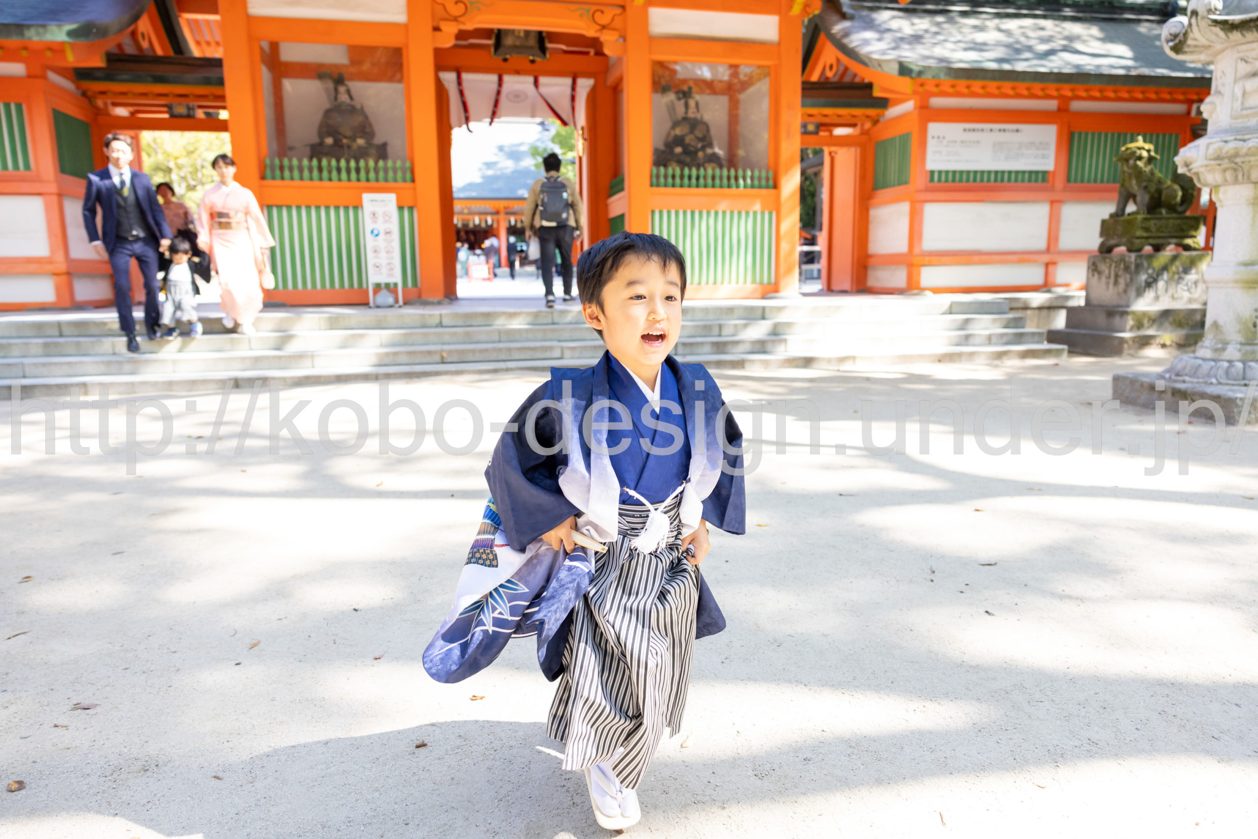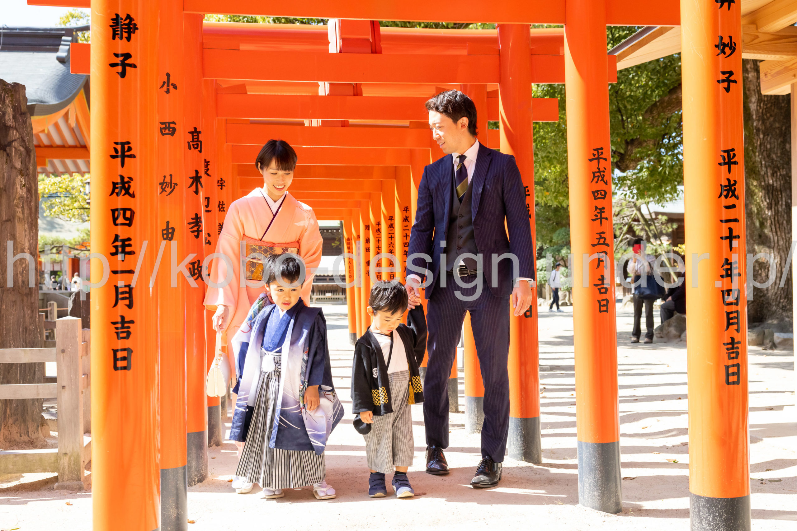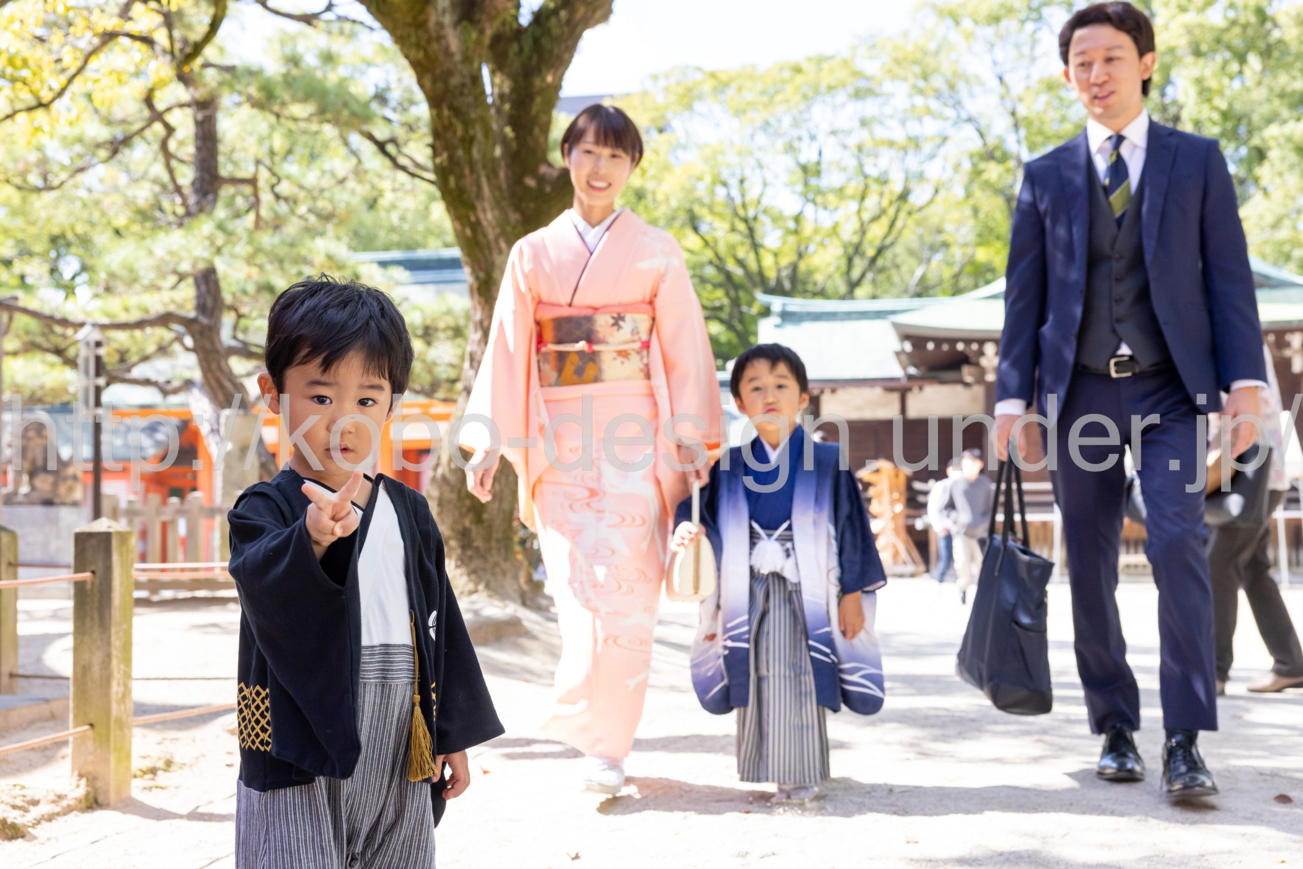 kobo-Design ではご希望の場所で御希望の撮影を承る出張カメラマンサービスになります。 七五三、お宮参り、餅踏み、など御子様の行事に同行し御依頼時間内の撮影を致します。集合写真、お爺さんお婆さんとお孫さんでのカット、御夫妻とお子さんでのカット、祈願中の撮影が可能な場合は祈願中のカット、あとは御子様の自然な表情など時間内枚数制限なしで撮影致します。 まずはお気軽に問い合わせ下さい。