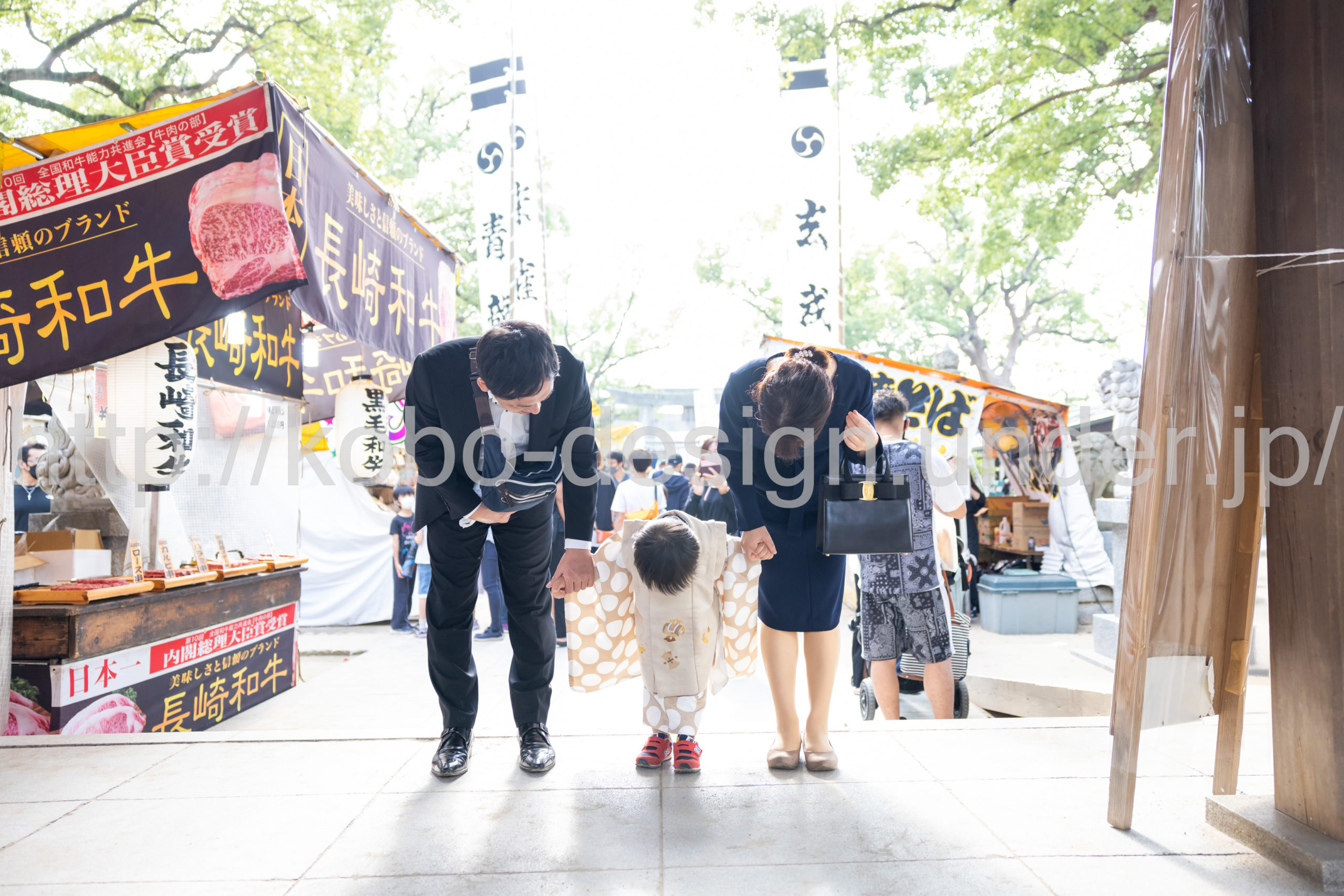 kobo-Design ではご希望の場所で御希望の撮影を承る出張カメラマンサービスになります。 七五三、お宮参り、餅踏み、など御子様の行事に同行し御依頼時間内の撮影を致します。集合写真、お爺さんお婆さんとお孫さんでのカット、御夫妻とお子さんでのカット、祈願中の撮影が可能な場合は祈願中のカット、あとは御子様の自然な表情など時間内枚数制限なしで撮影致します。 まずはお気軽に問い合わせ下さい。