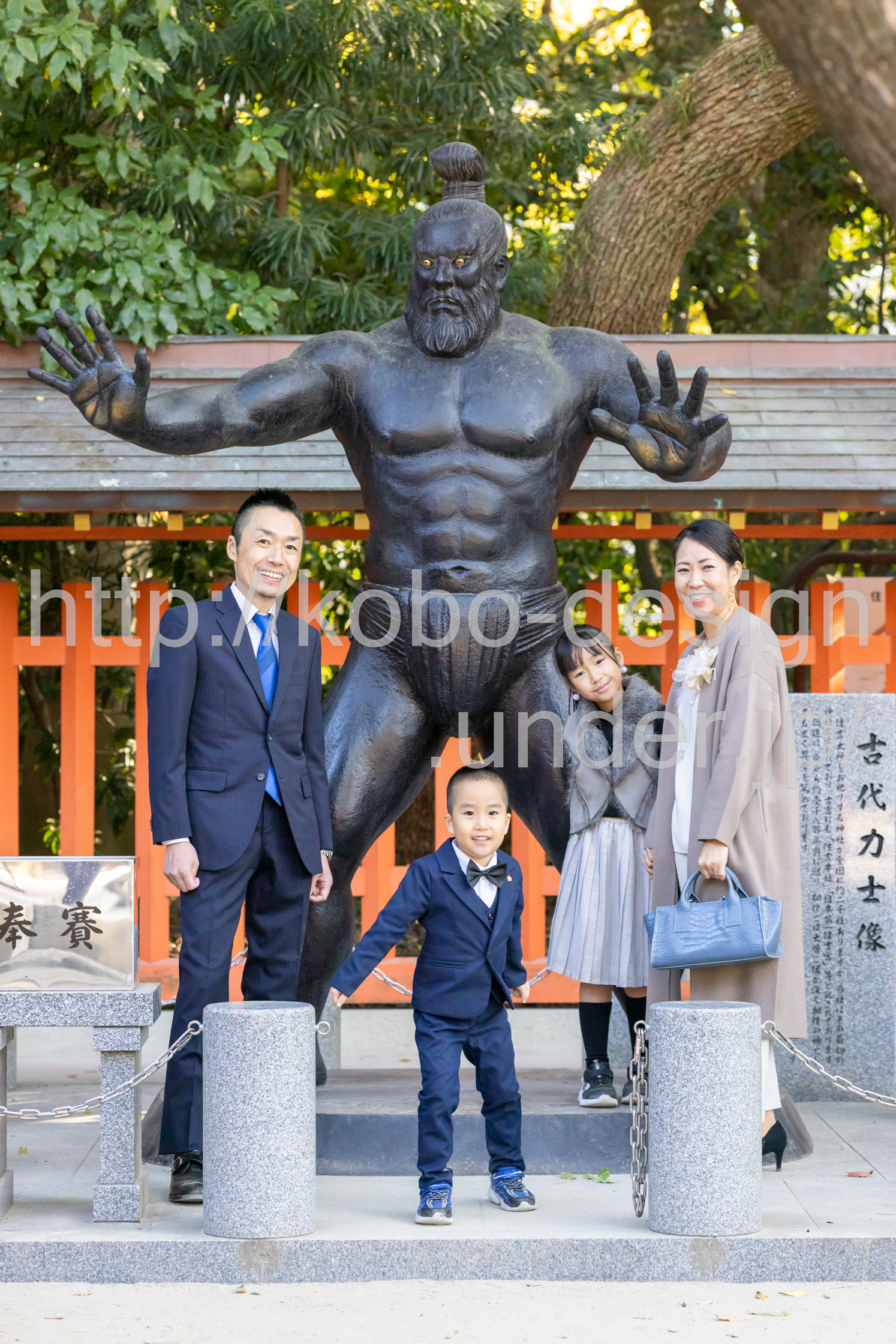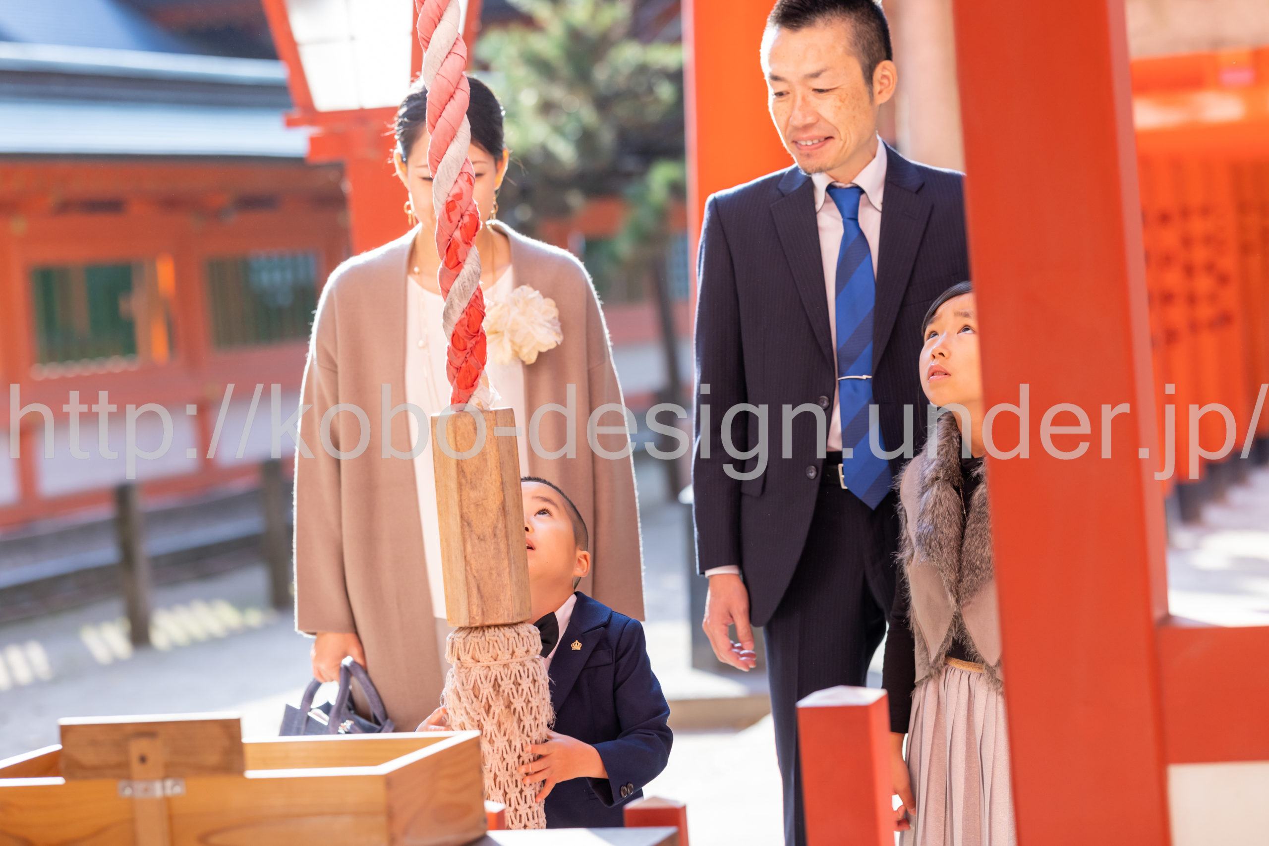 kobo-Design ではご希望の場所で御希望の撮影を承る出張カメラマンサービスになります。 七五三、お宮参り、餅踏み、など御子様の行事に同行し御依頼時間内の撮影を致します。集合写真、お爺さんお婆さんとお孫さんでのカット、御夫妻とお子さんでのカット、祈願中の撮影が可能な場合は祈願中のカット、あとは御子様の自然な表情など時間内枚数制限なしで撮影致します。 まずはお気軽に問い合わせ下さい。