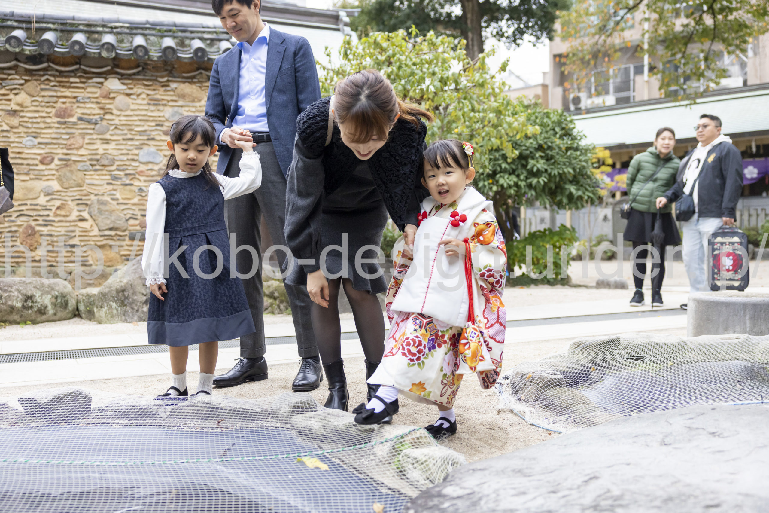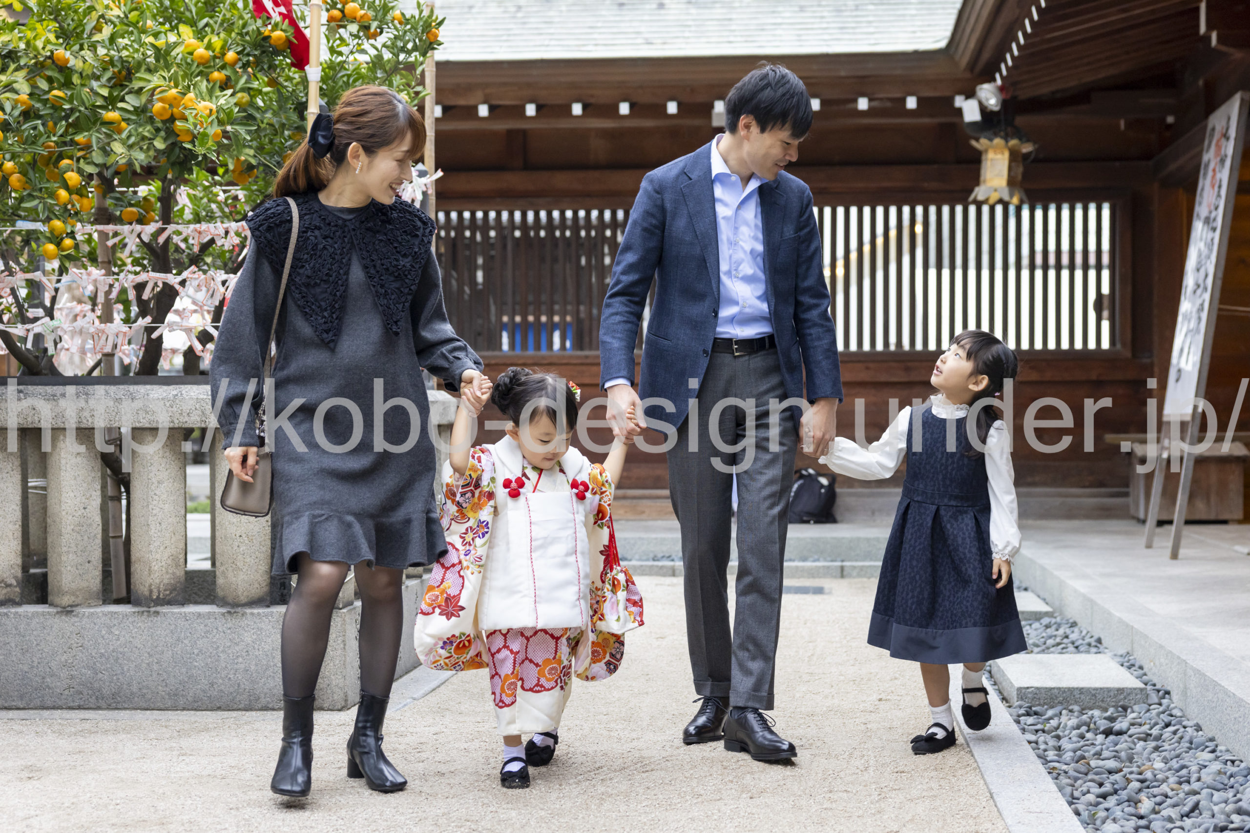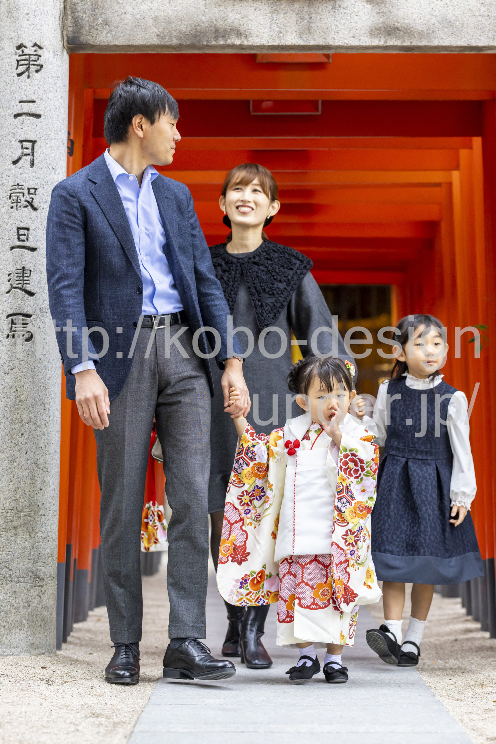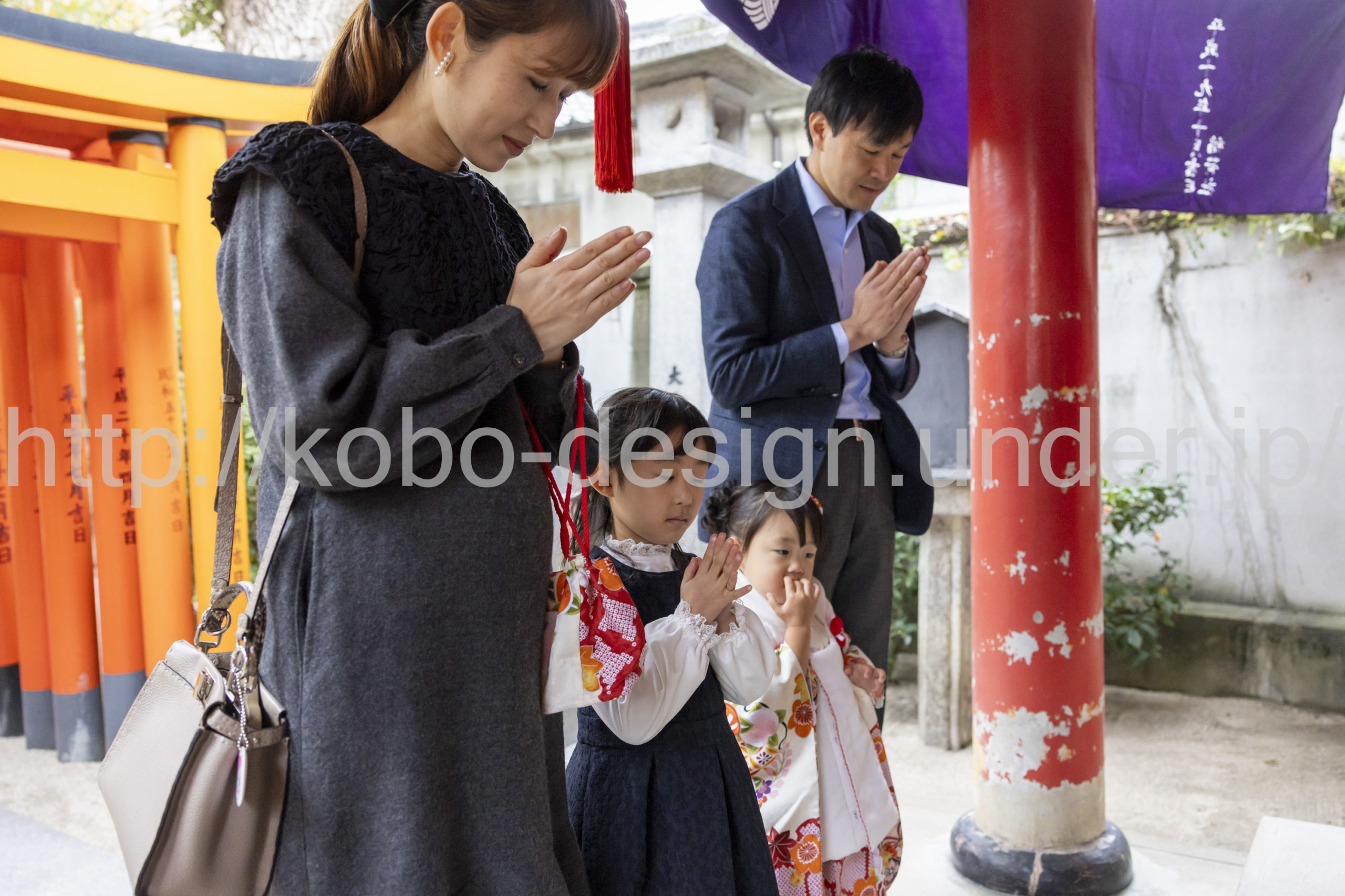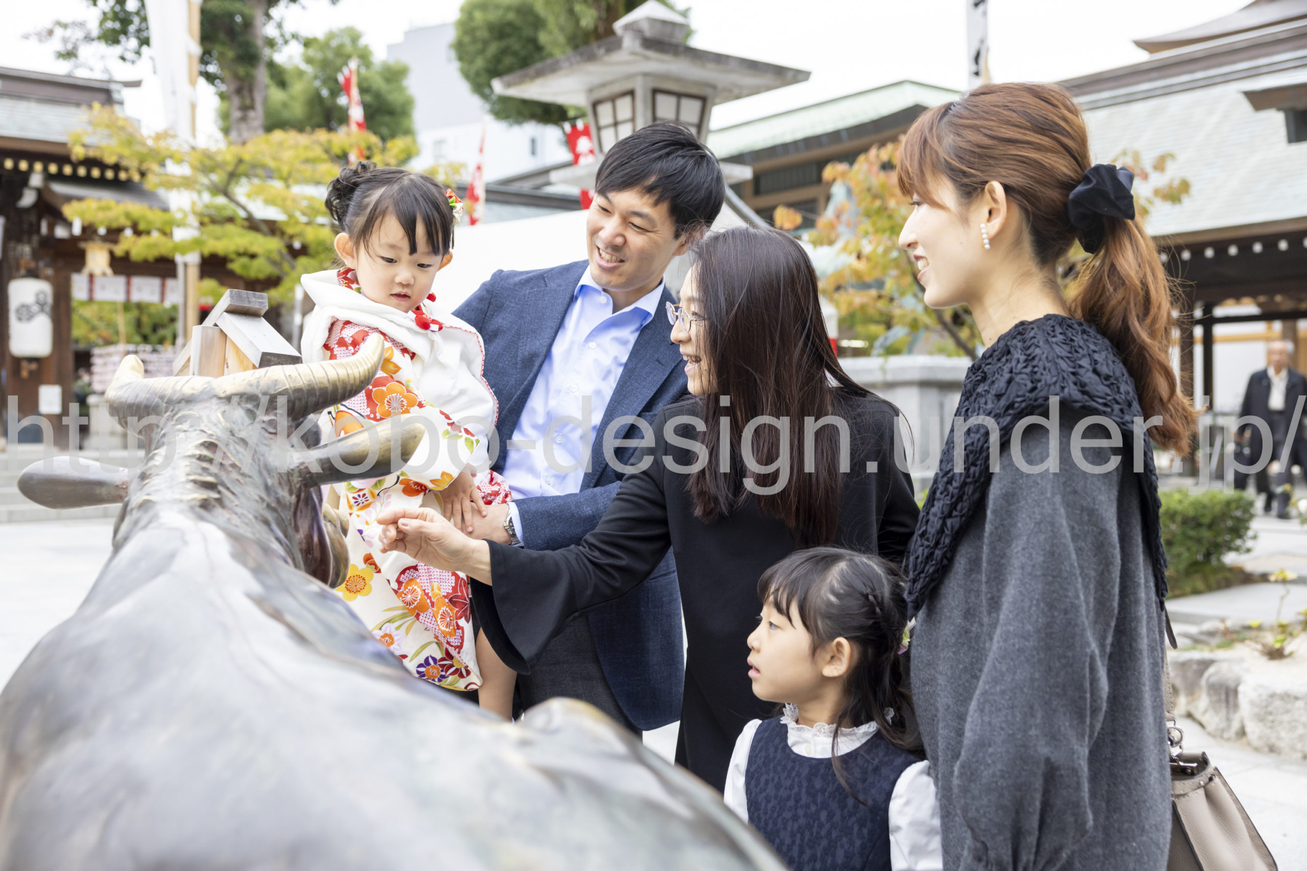 kobo-Design ではご希望の場所で御希望の撮影を承る出張カメラマンサービスになります。 七五三、お宮参り、餅踏み、など御子様の行事に同行し御依頼時間内の撮影を致します。集合写真、お爺さんお婆さんとお孫さんでのカット、御夫妻とお子さんでのカット、祈願中の撮影が可能な場合は祈願中のカット、あとは御子様の自然な表情など時間内枚数制限なしで撮影致します。 まずはお気軽に問い合わせ下さい。