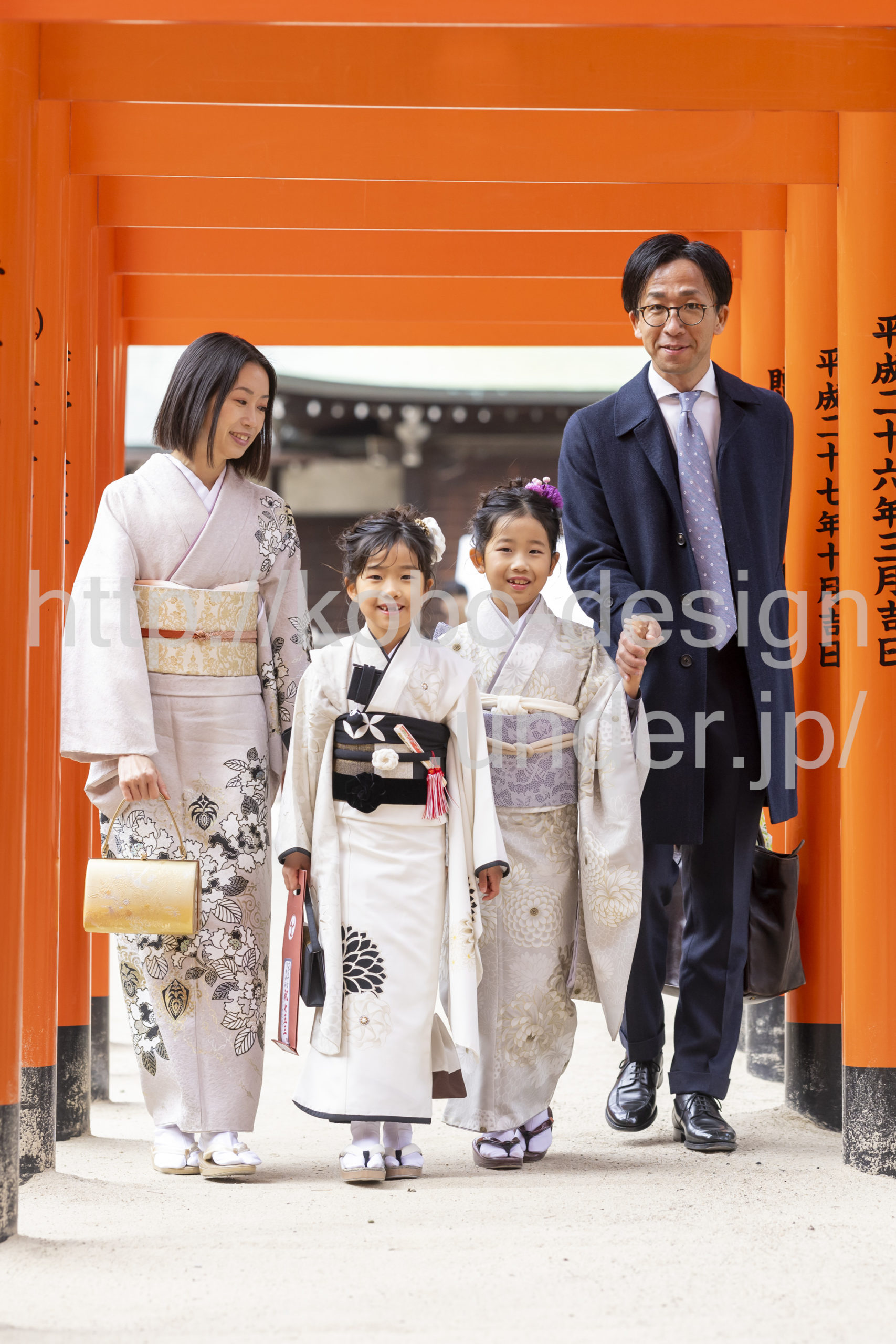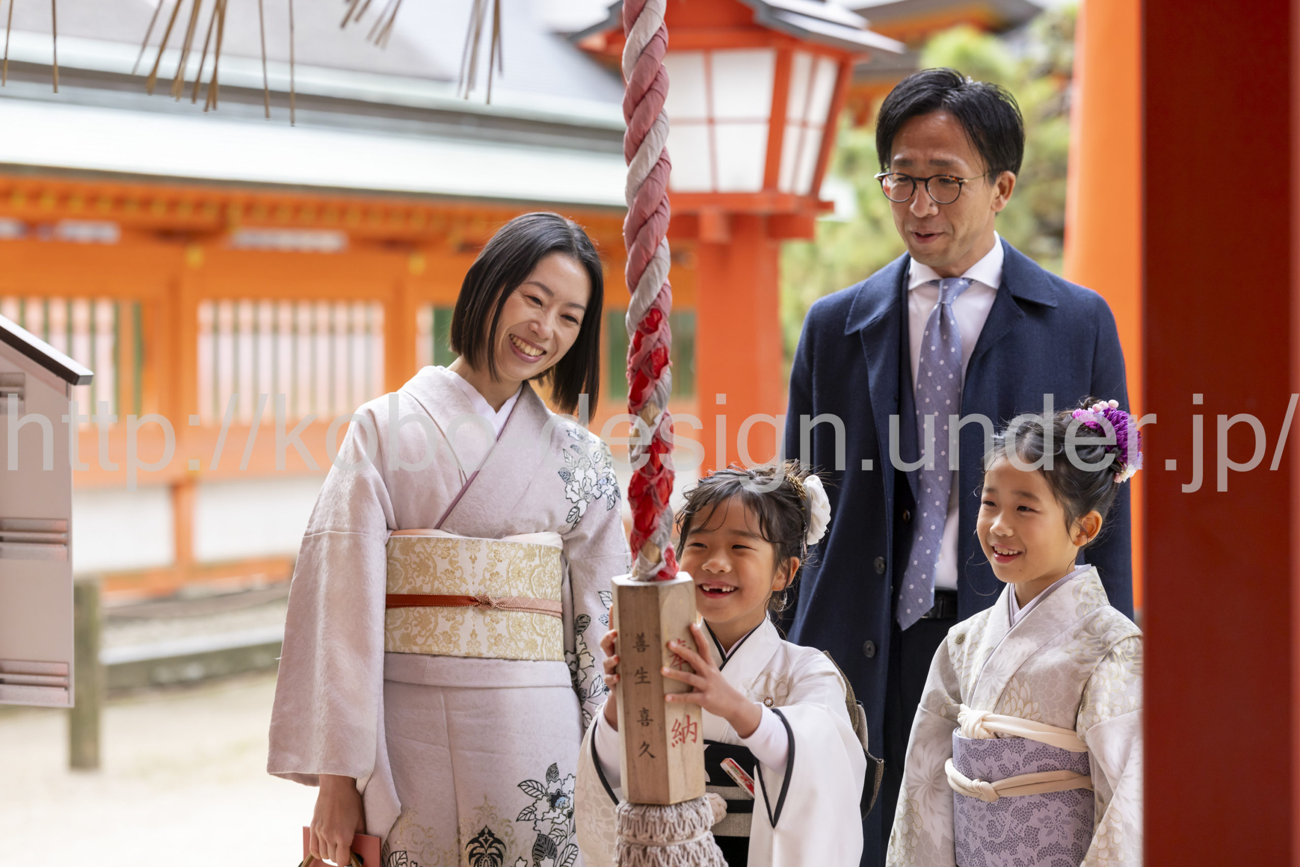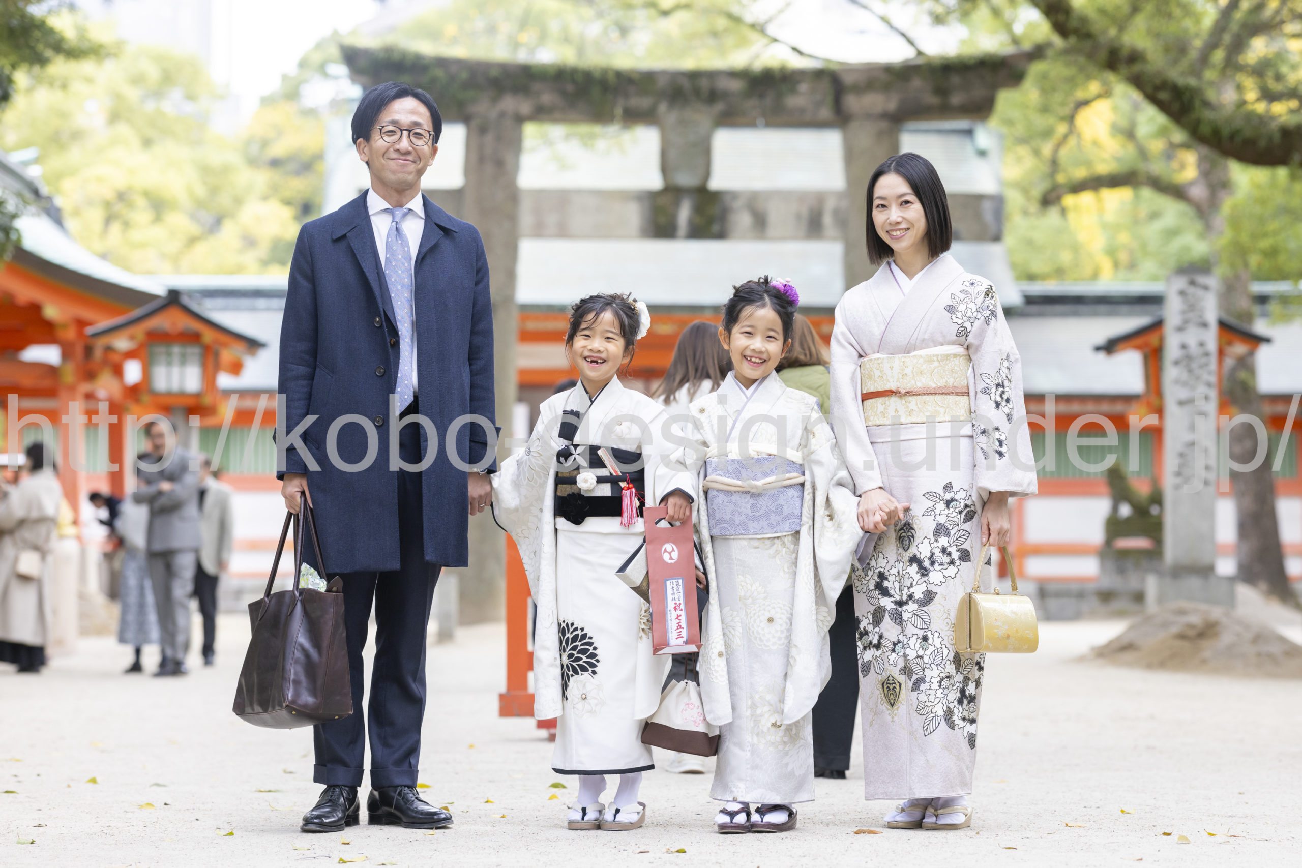 kobo-Design ではご希望の場所で御希望の撮影を承る出張カメラマンサービスになります。 七五三、お宮参り、餅踏み、など御子様の行事に同行し御依頼時間内の撮影を致します。集合写真、お爺さんお婆さんとお孫さんでのカット、御夫妻とお子さんでのカット、祈願中の撮影が可能な場合は祈願中のカット、あとは御子様の自然な表情など時間内枚数制限なしで撮影致します。 まずはお気軽に問い合わせ下さい。