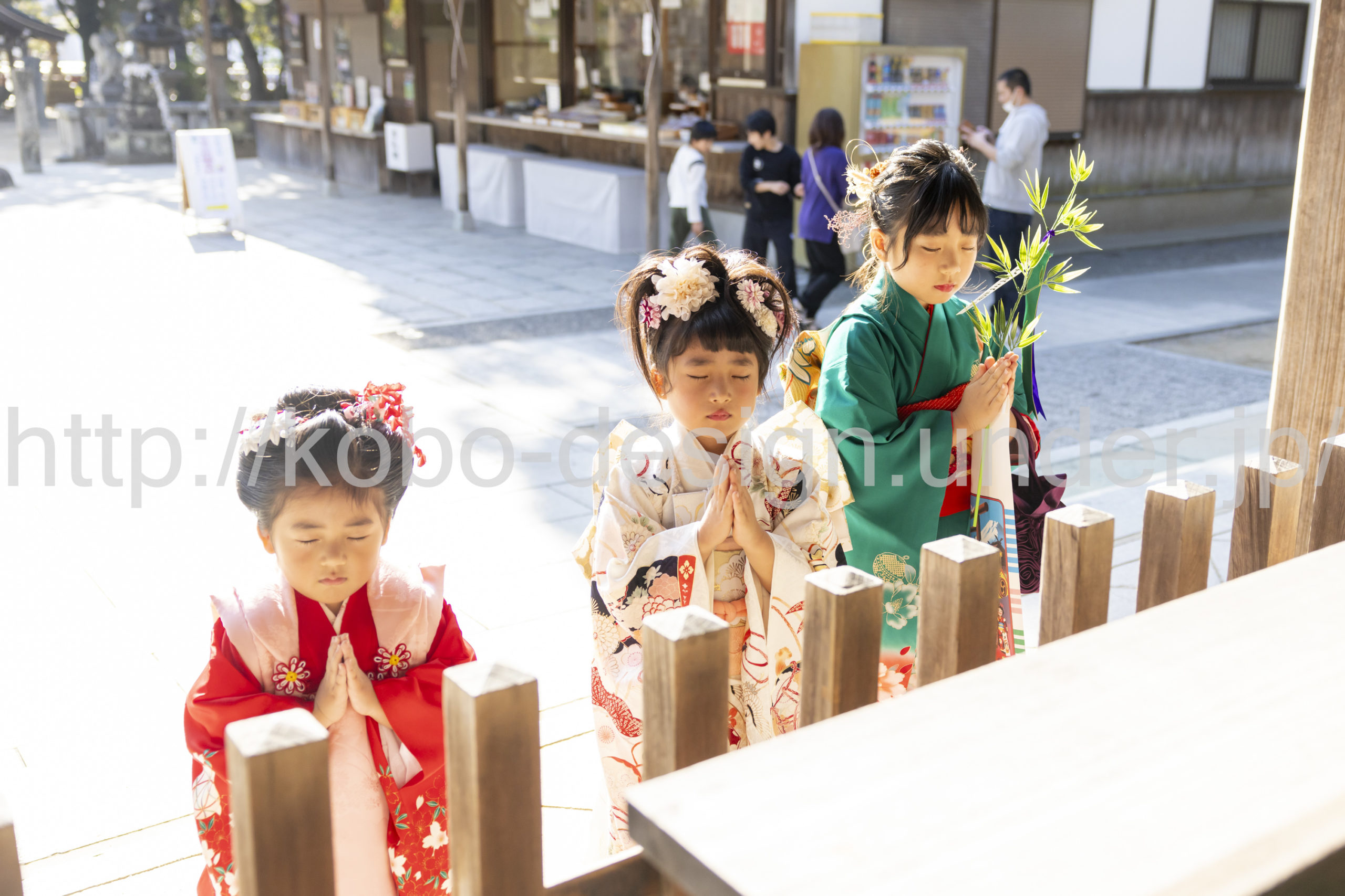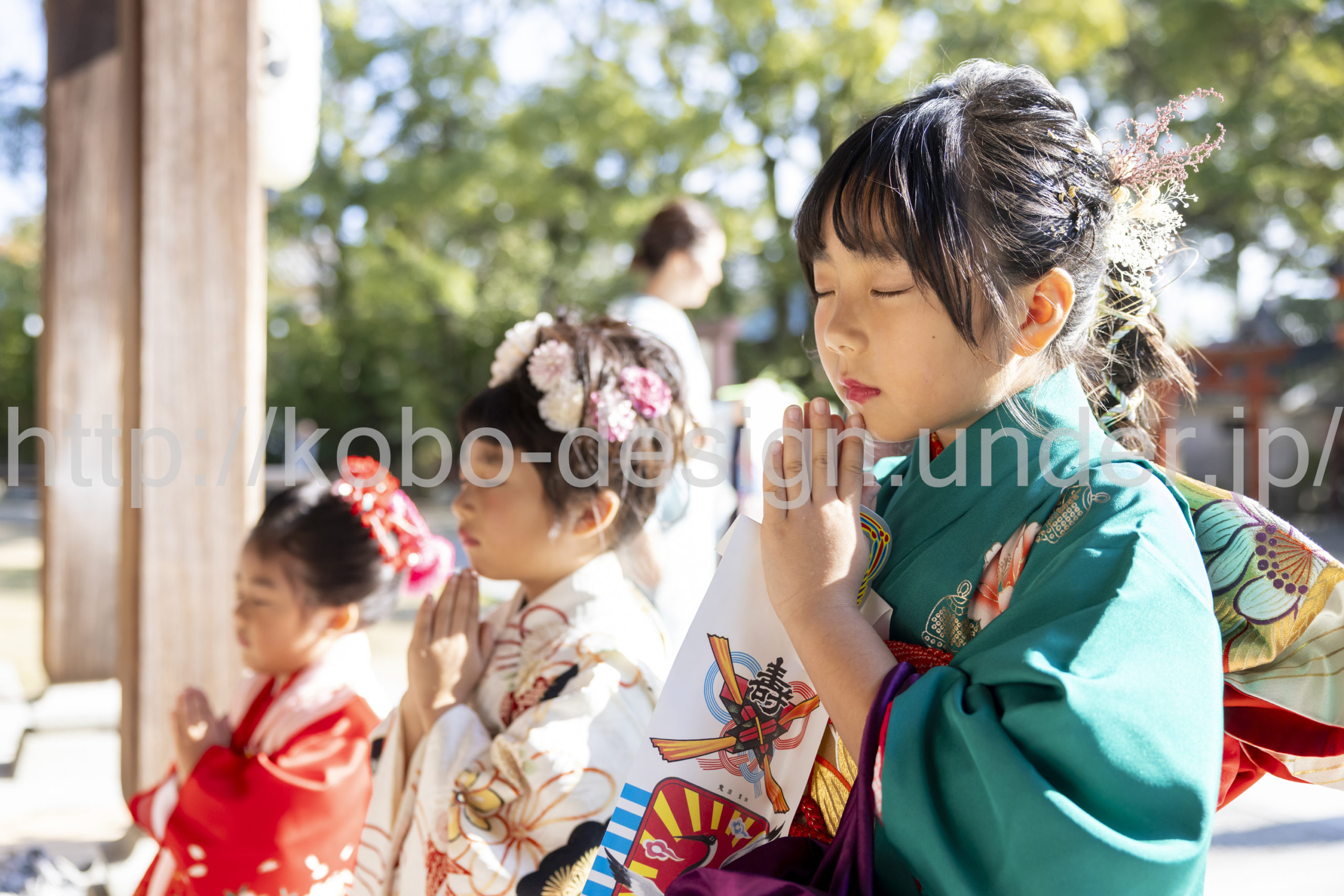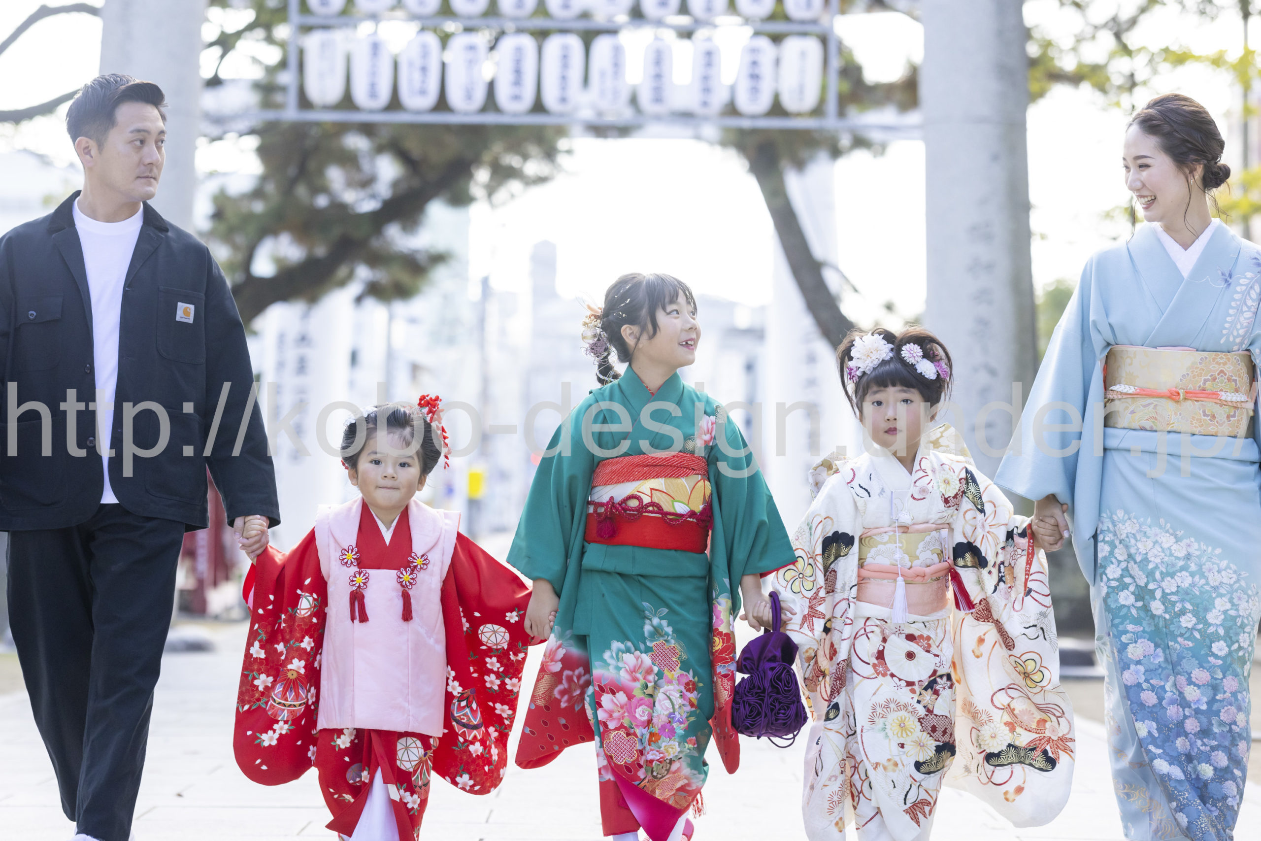 kobo-Design ではご希望の場所で御希望の撮影を承る出張カメラマンサービスになります。 七五三、お宮参り、餅踏み、など御子様の行事に同行し御依頼時間内の撮影を致します。集合写真、おじいちゃんおばあちゃんとお孫さんでのカット、御夫妻とお子さんでのカット、祈願中の撮影が可能な場合は祈願中のカット、あとは御子様の自然な表情など時間内枚数制限なしで撮影致します。 まずはお気軽に問い合わせ下さい。