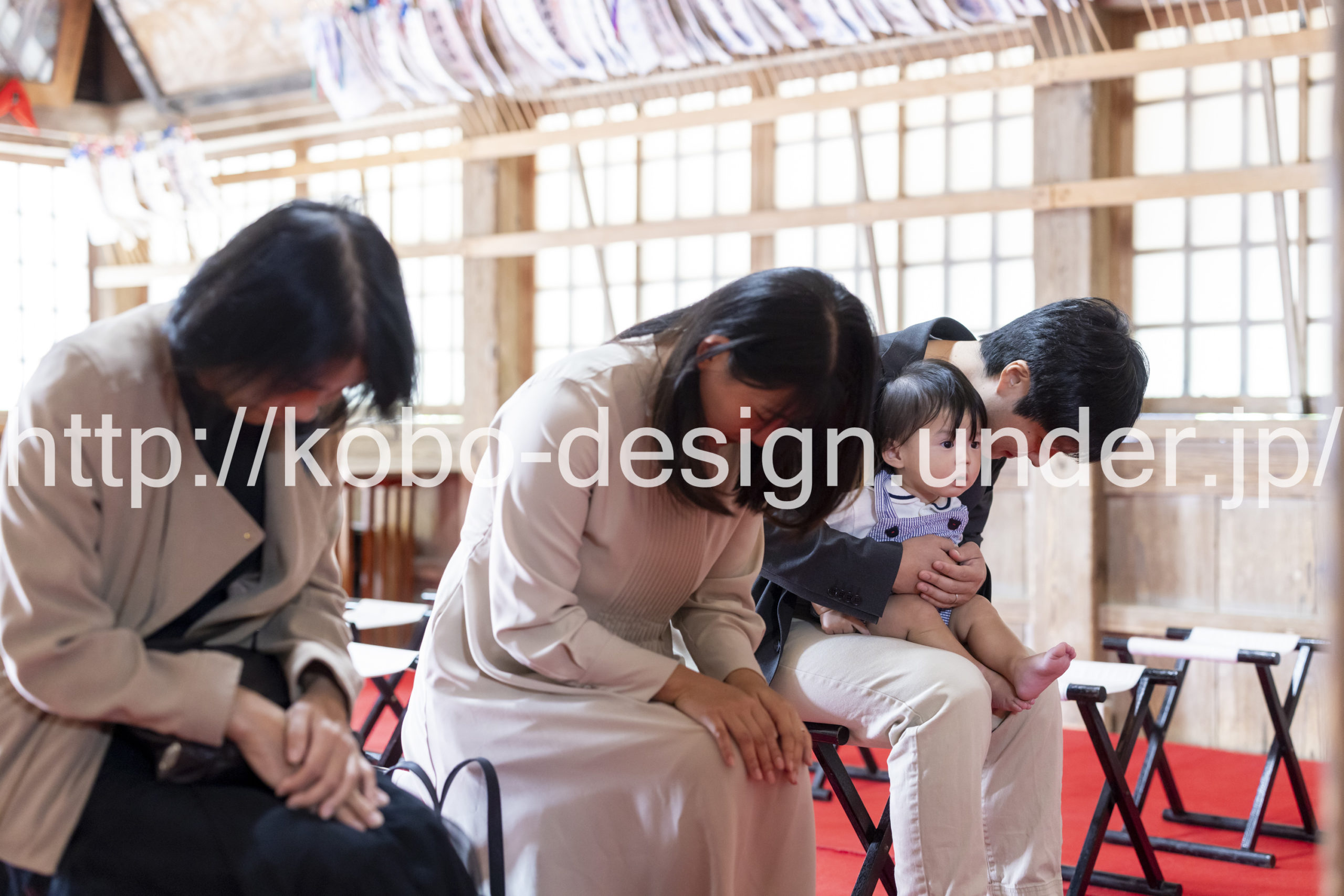 kobo-Design ではご希望の場所で御希望の撮影を承る出張カメラマンサービスになります。 七五三、お宮参り、餅踏み、など御子様の行事に同行し御依頼時間内の撮影を致します。集合写真、お爺さんお婆さんとお孫さんでのカット、御夫妻とお子さんでのカット、祈願中の撮影が可能な場合は祈願中のカット、あとは御子様の自然な表情など時間内枚数制限なしで撮影致します。 まずはお気軽に問い合わせ下さい。