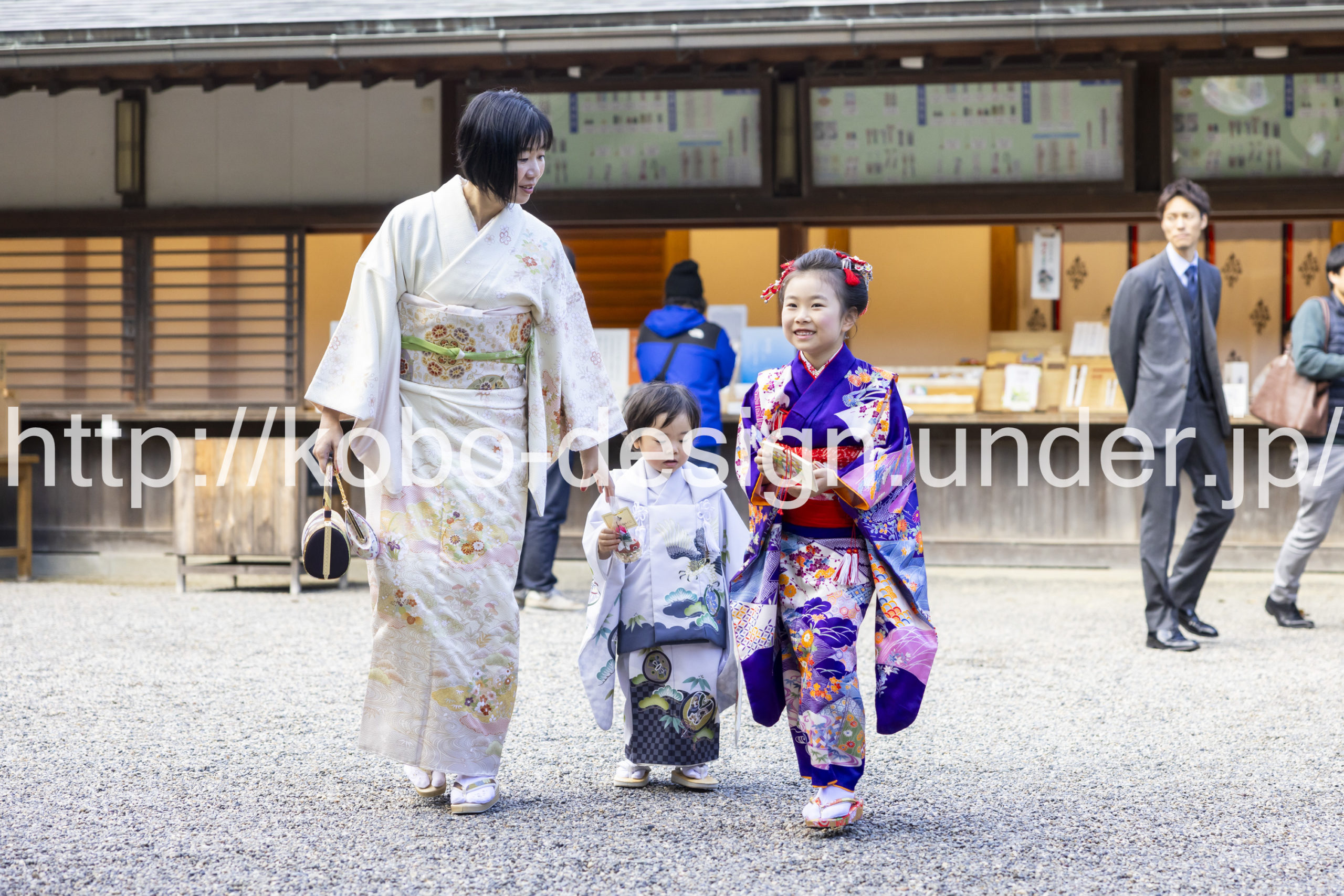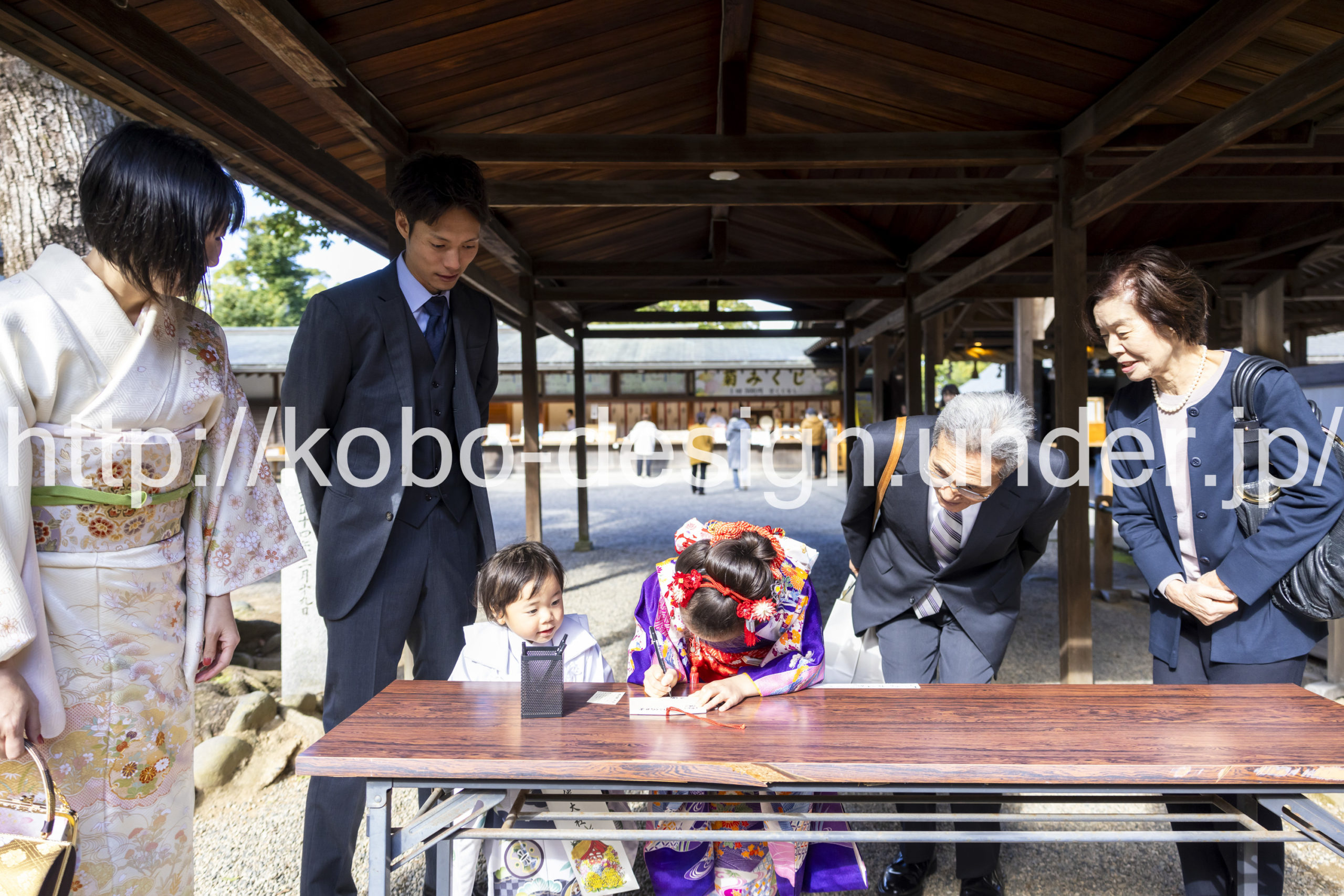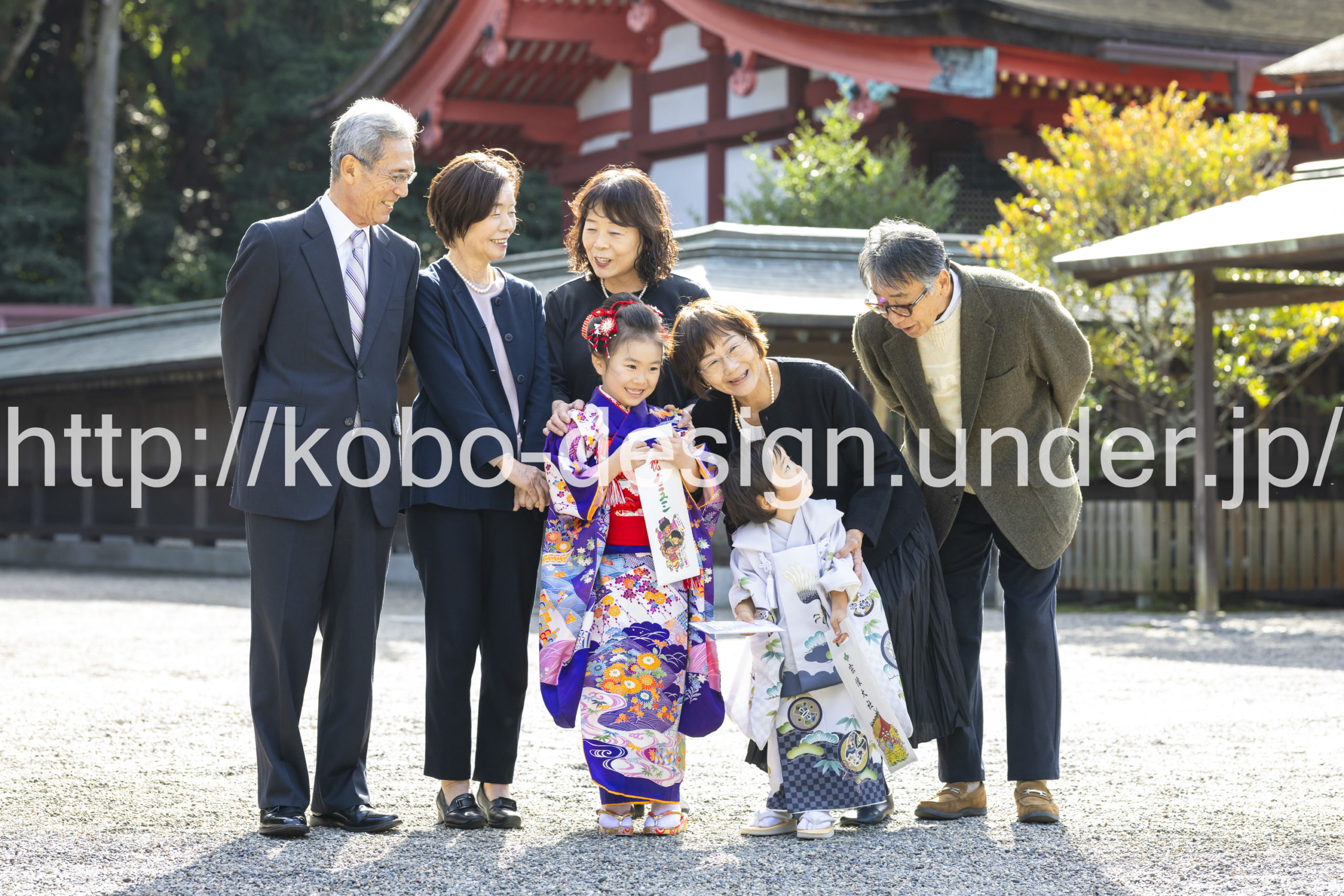 kobo-Design ではご希望の場所で御希望の撮影を承る出張カメラマンサービスになります。 七五三、お宮参り、餅踏み、など御子様の行事に同行し御依頼時間内の撮影を致します。集合写真、おじいちゃんおばあちゃんとお孫さんでのカット、御夫妻とお子さんでのカット、祈願中の撮影が可能な場合は祈願中のカット、あとは御子様の自然な表情など時間内枚数制限なしで撮影致します。 まずはお気軽に問い合わせ下さい。