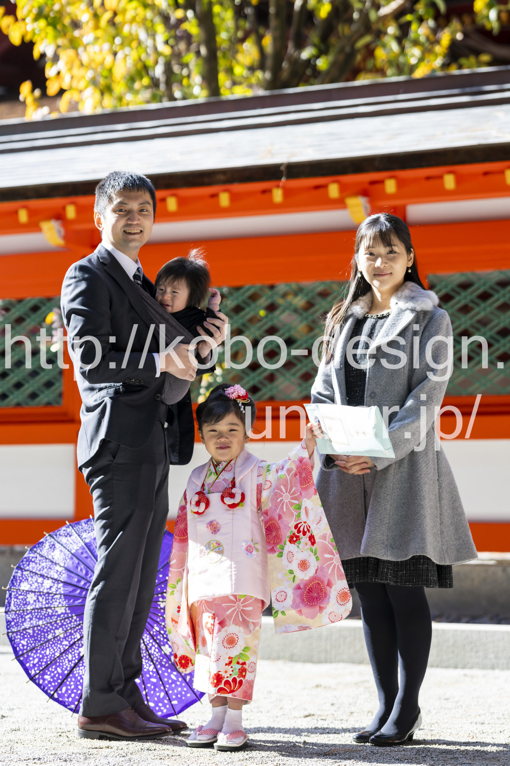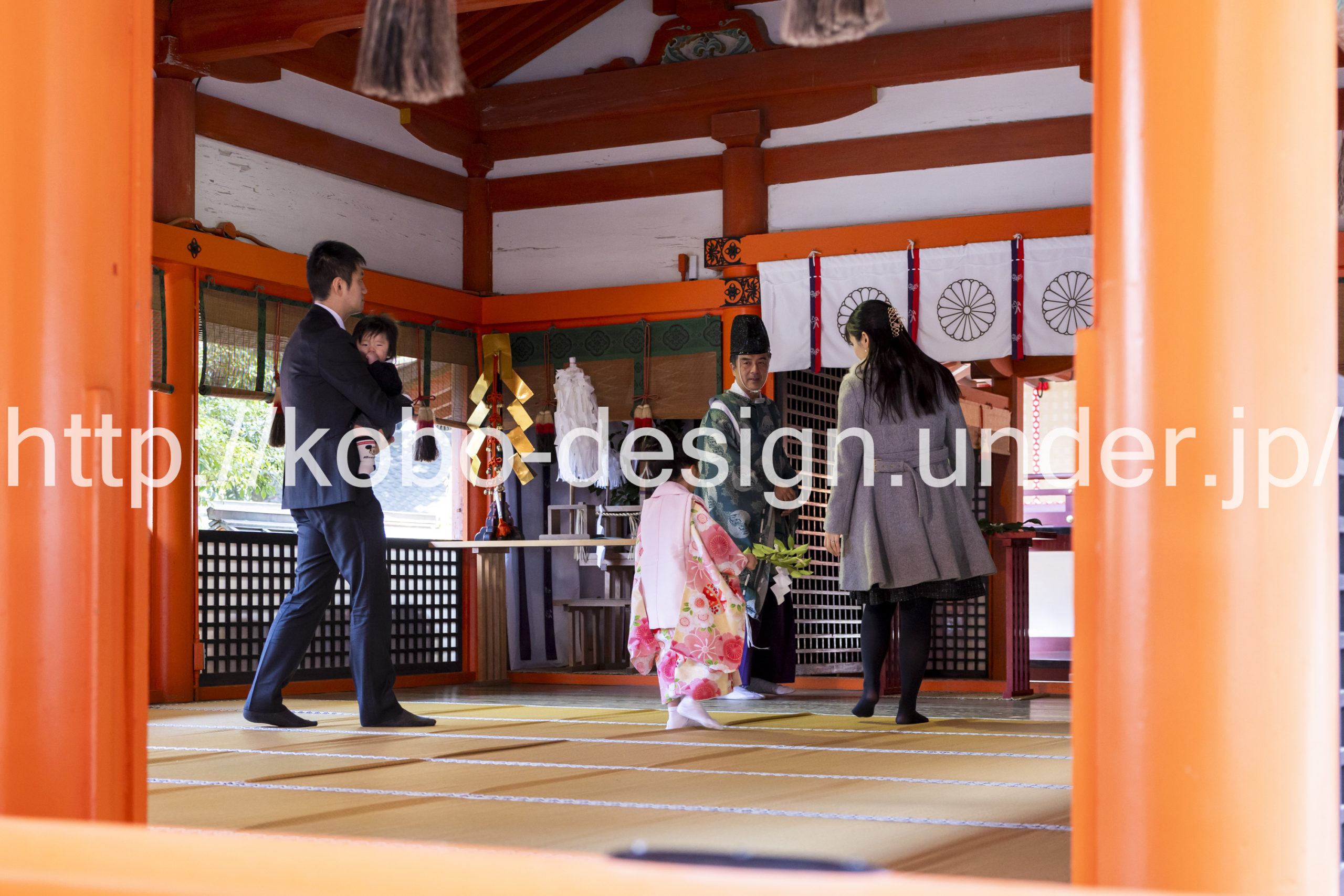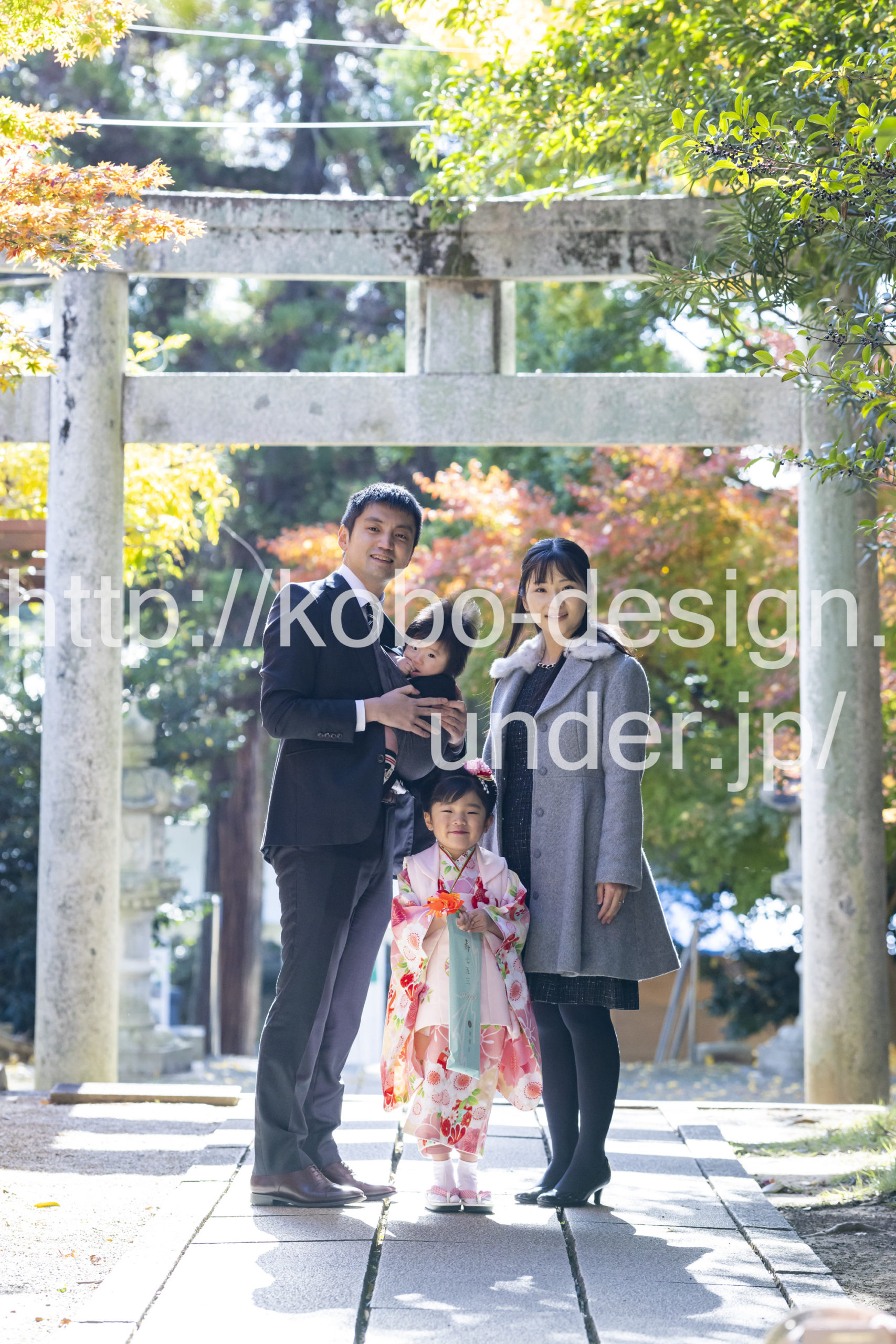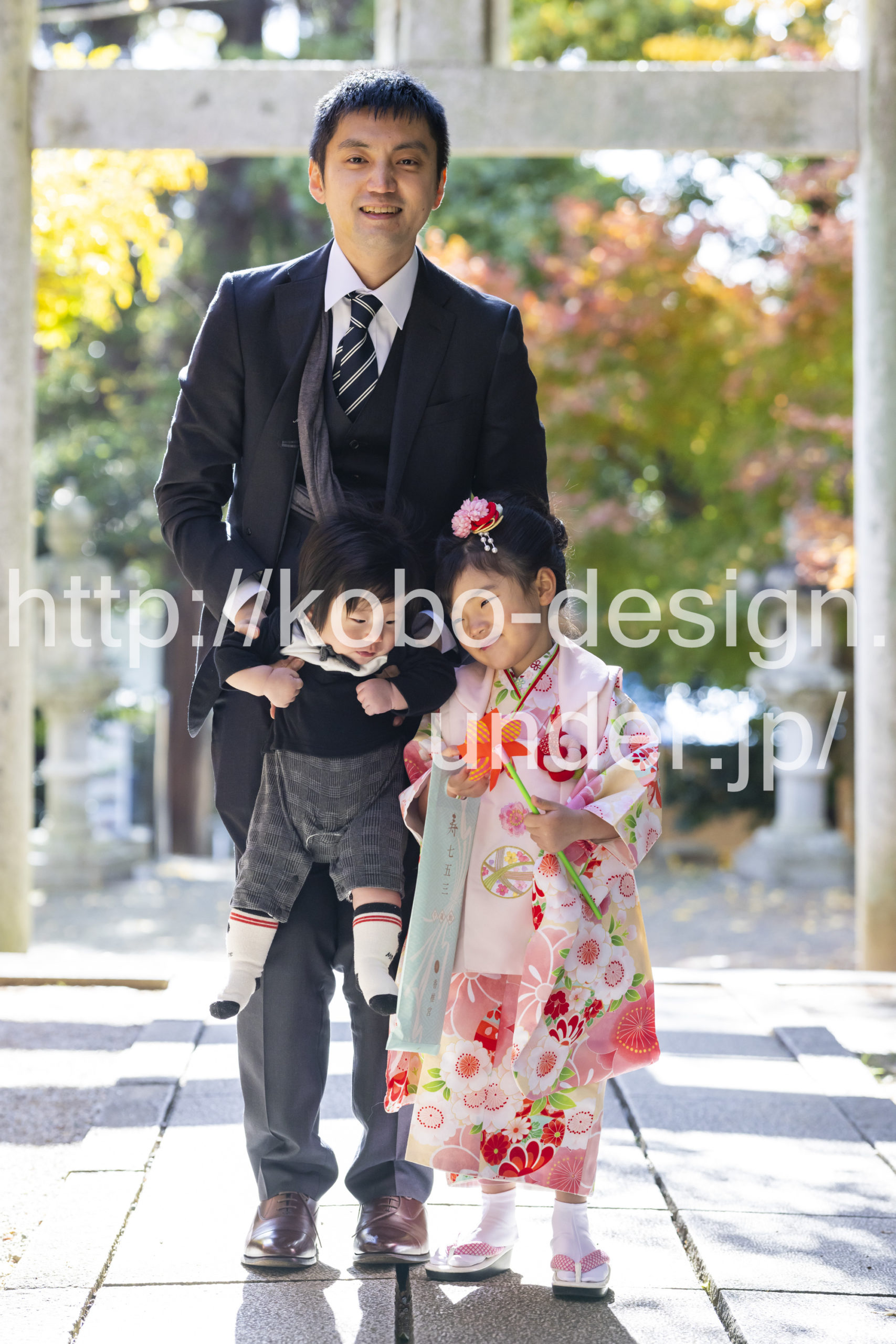 kobo-Design ではご希望の場所で御希望の撮影を承る出張カメラマンサービスになります。 七五三、お宮参り、餅踏み、など御子様の行事に同行し御依頼時間内の撮影を致します。集合写真、おじいちゃんおばあちゃんとお孫さんでのカット、御夫妻とお子さんでのカット、祈願中の撮影が可能な場合は祈願中のカット、あとは御子様の自然な表情など時間内枚数制限なしで撮影致します。 まずはお気軽に問い合わせ下さい。