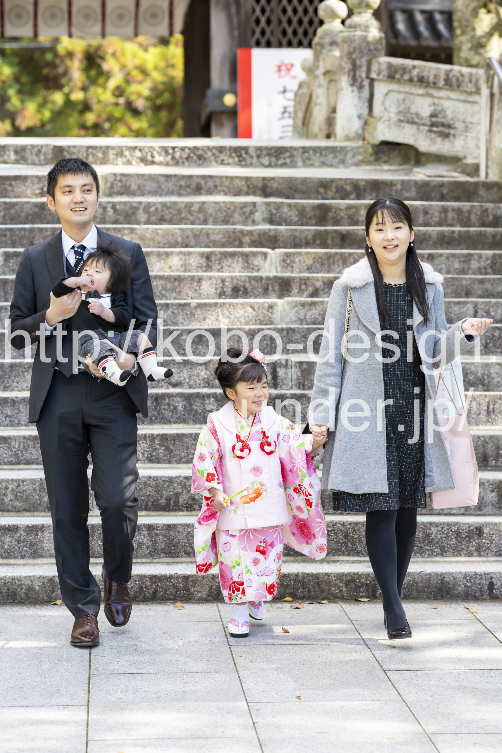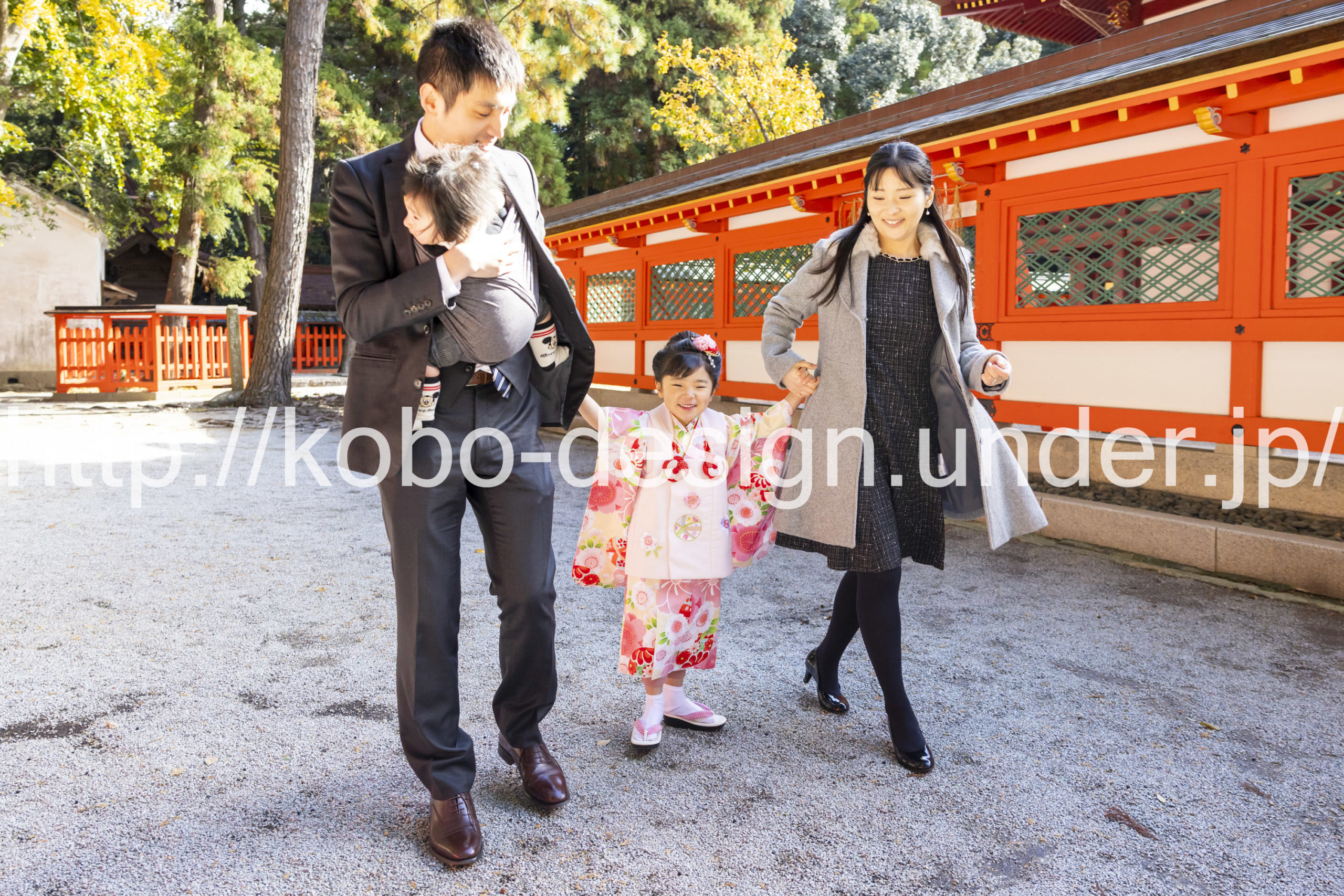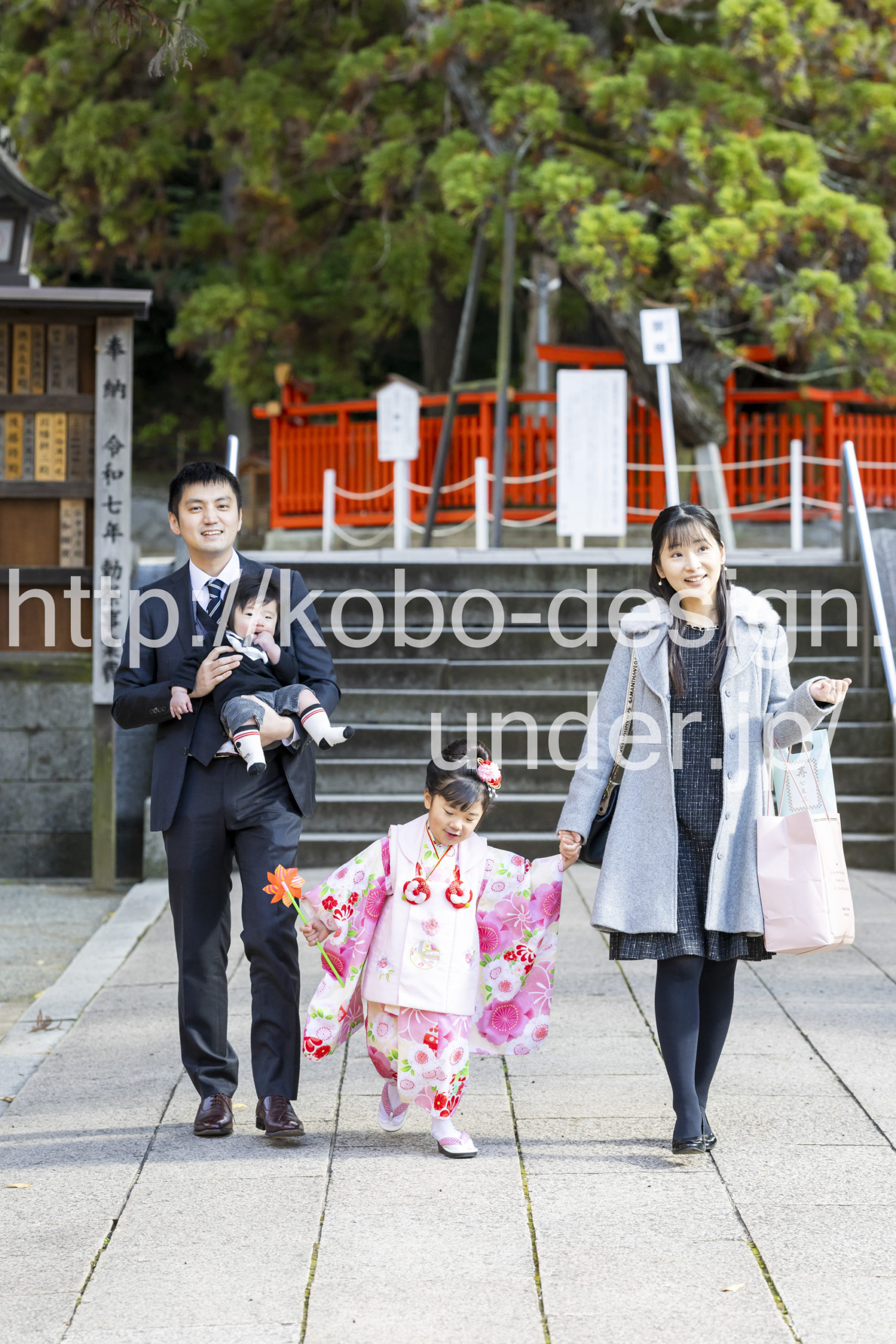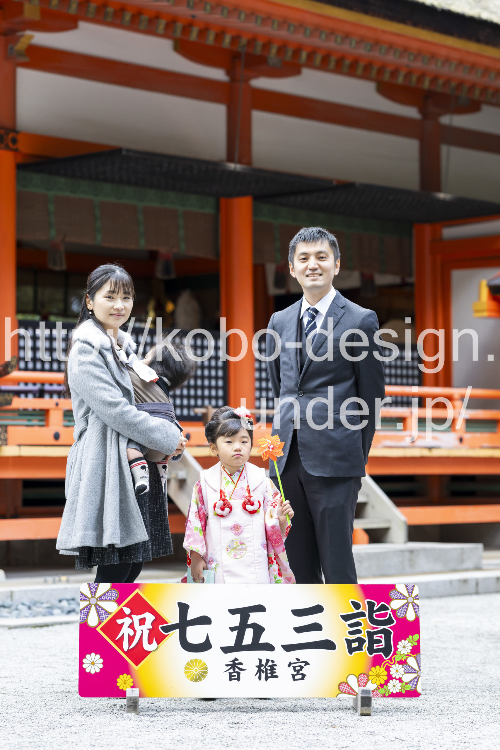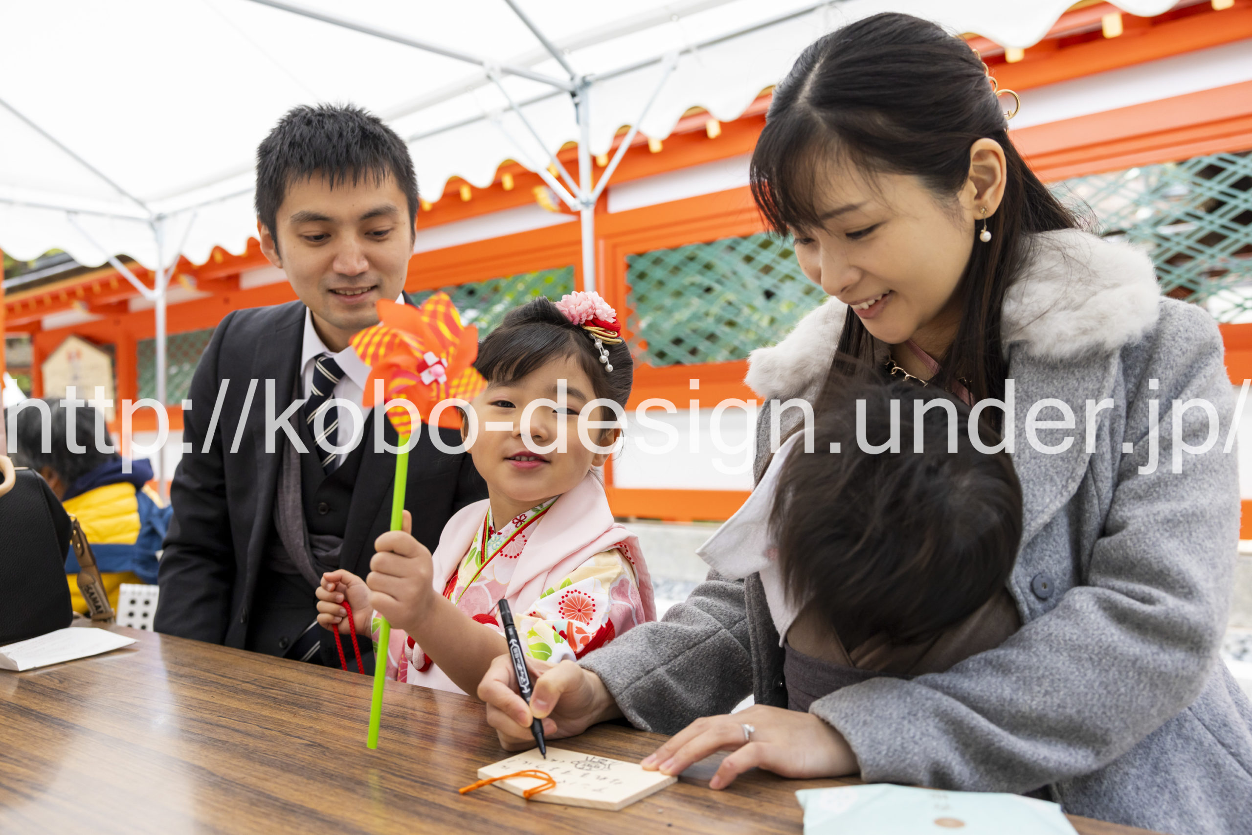 kobo-Design ではご希望の場所で御希望の撮影を承る出張カメラマンサービスになります。 七五三、お宮参り、餅踏み、など御子様の行事に同行し御依頼時間内の撮影を致します。集合写真、おじいちゃんおばあちゃんとお孫さんでのカット、御夫妻とお子さんでのカット、祈願中の撮影が可能な場合は祈願中のカット、あとは御子様の自然な表情など時間内枚数制限なしで撮影致します。 まずはお気軽に問い合わせ下さい。