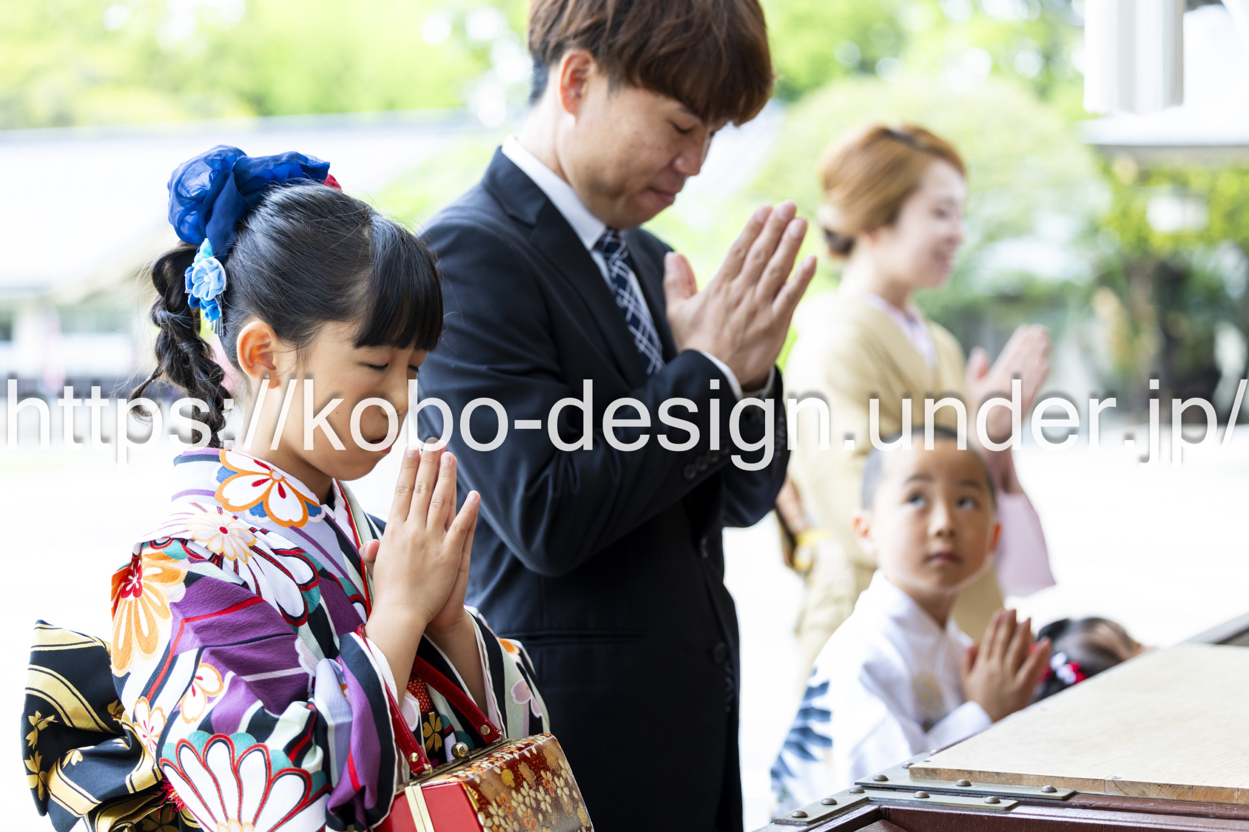 kobo-Design ではご希望の場所で御希望の撮影を承る出張カメラマンサービスになります。 七五三、お宮参り、餅踏み、など御子様の行事に同行し御依頼時間内の撮影を致します。集合写真、お爺さんお婆さんとお孫さんでのカット、御夫妻とお子さんでのカット、祈願中の撮影が可能な場合は祈願中のカット、あとは御子様の自然な表情など時間内枚数制限なしで撮影致します。 まずはお気軽に問い合わせ下さい。