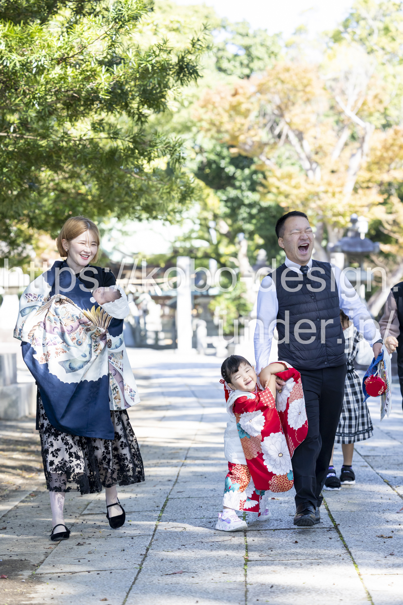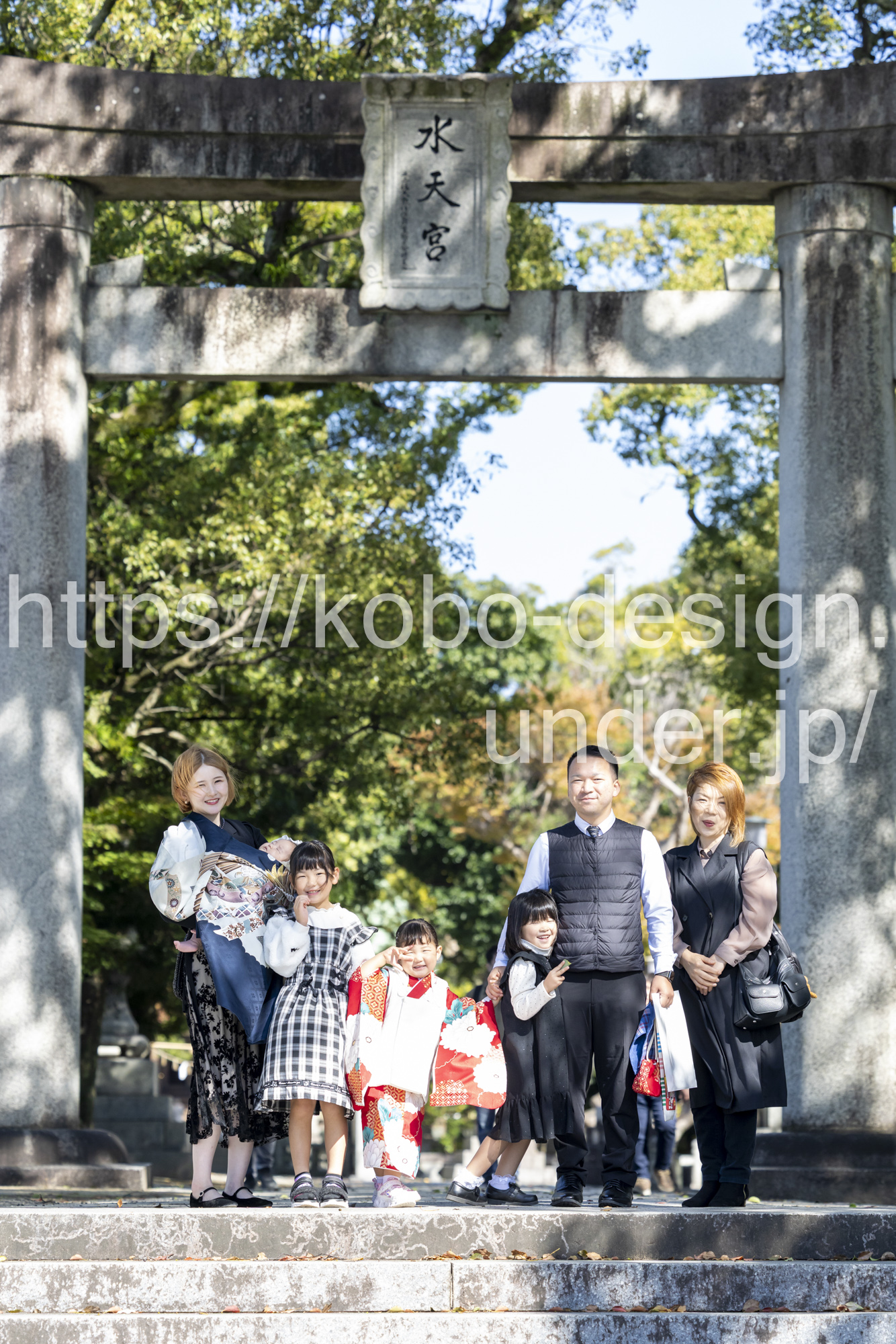 kobo-Design ではご希望の場所で御希望の撮影を承る出張カメラマンサービスになります。 七五三、お宮参り、餅踏み、など御子様の行事に同行し御依頼時間内の撮影を致します。集合写真、お爺さんお婆さんとお孫さんでのカット、御夫妻とお子さんでのカット、祈願中の撮影が可能な場合は祈願中のカット、あとは御子様の自然な表情など時間内枚数制限なしで撮影致します。 まずはお気軽に問い合わせ下さい。