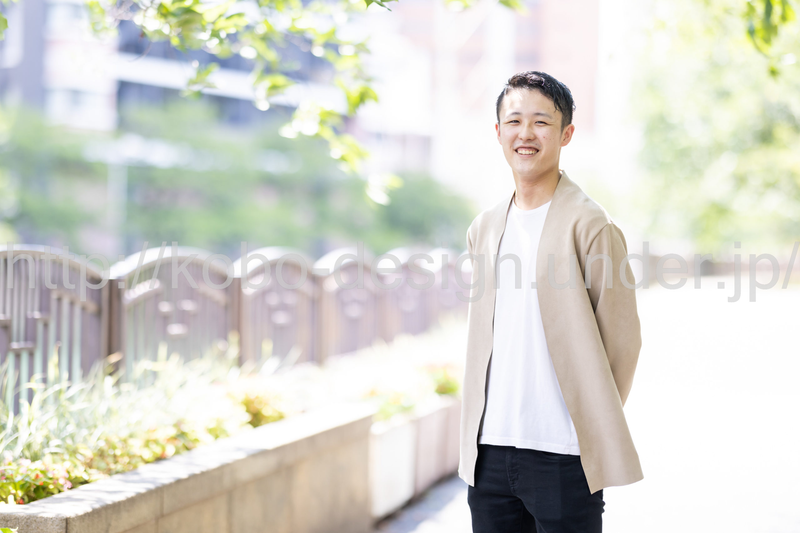 プロフィール撮影では公園などでの屋外撮影をご提案していて自然背景や街中背景をバックに自然な表情を多めに自然光で明るく撮影することが利点です。